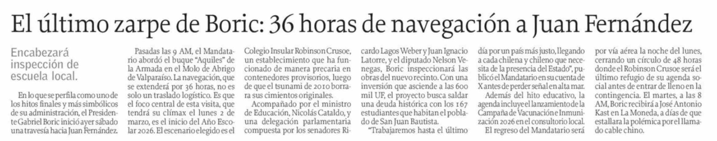 El último zarpe de Boric: 36 horas de navegación a Juan Fernández