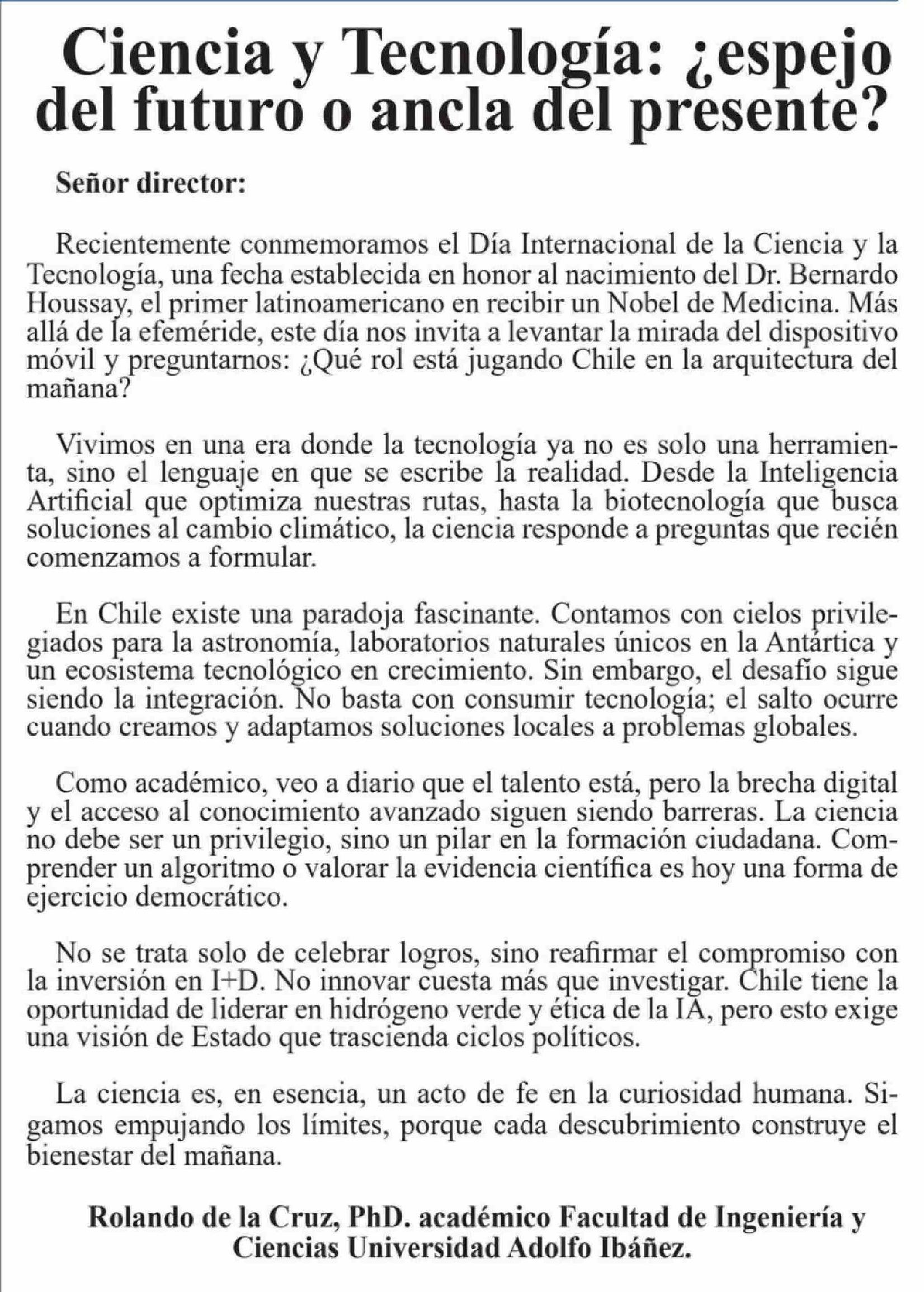 Cartas: Ciencia y Tecnología: ¿ espejo del futuro o ancla del presente?