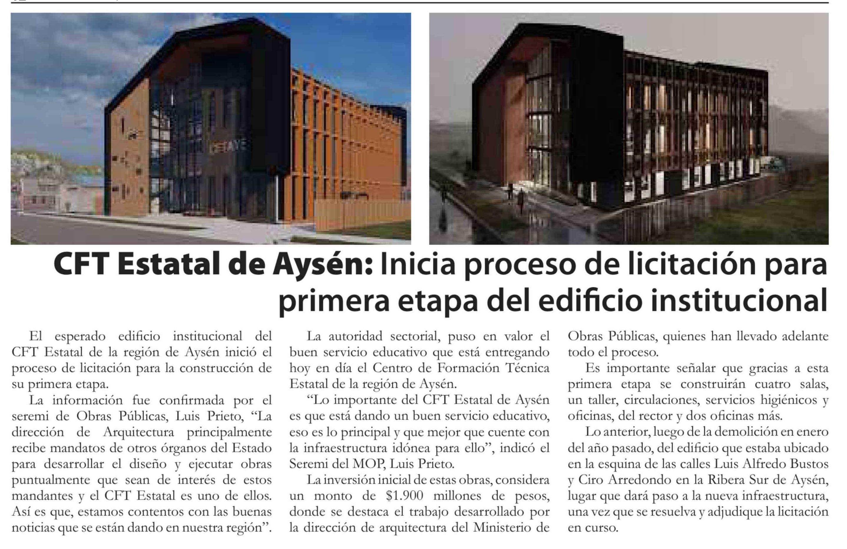CFT Estatal de Aysén: Inicia proceso de licitación para primera etapa del edificio institucional