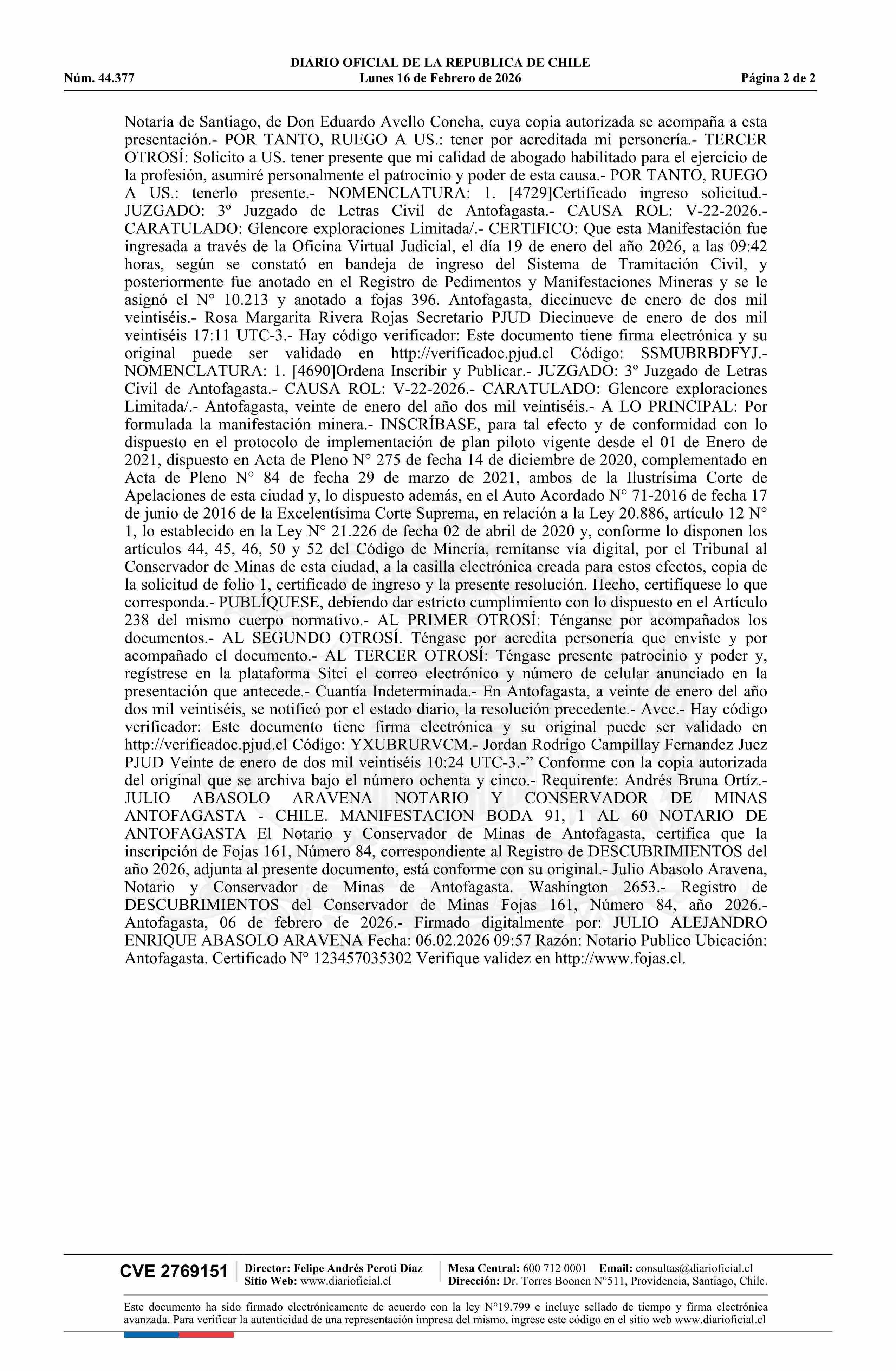 DIARIO OFICIAL CHILE - BOLETÍN OFICIAL DE MINERÍA (DIARIO OFICIAL CHILE – BOM – MANIFESTACIONES MIN)