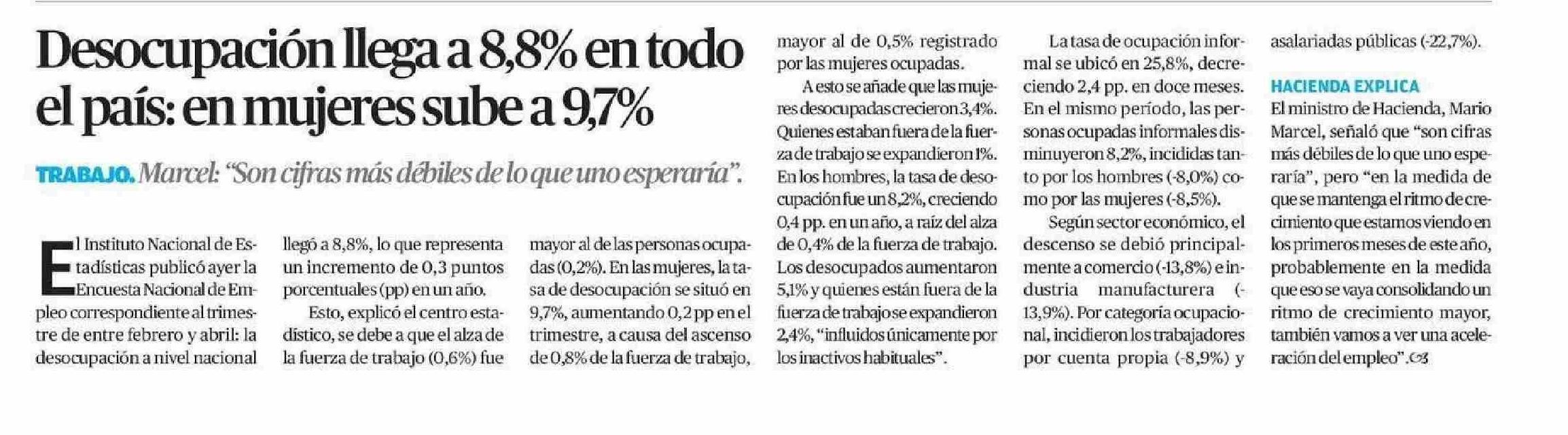 Desocupación llega a 8,8% en todo el país: en mujeres sube a 97%