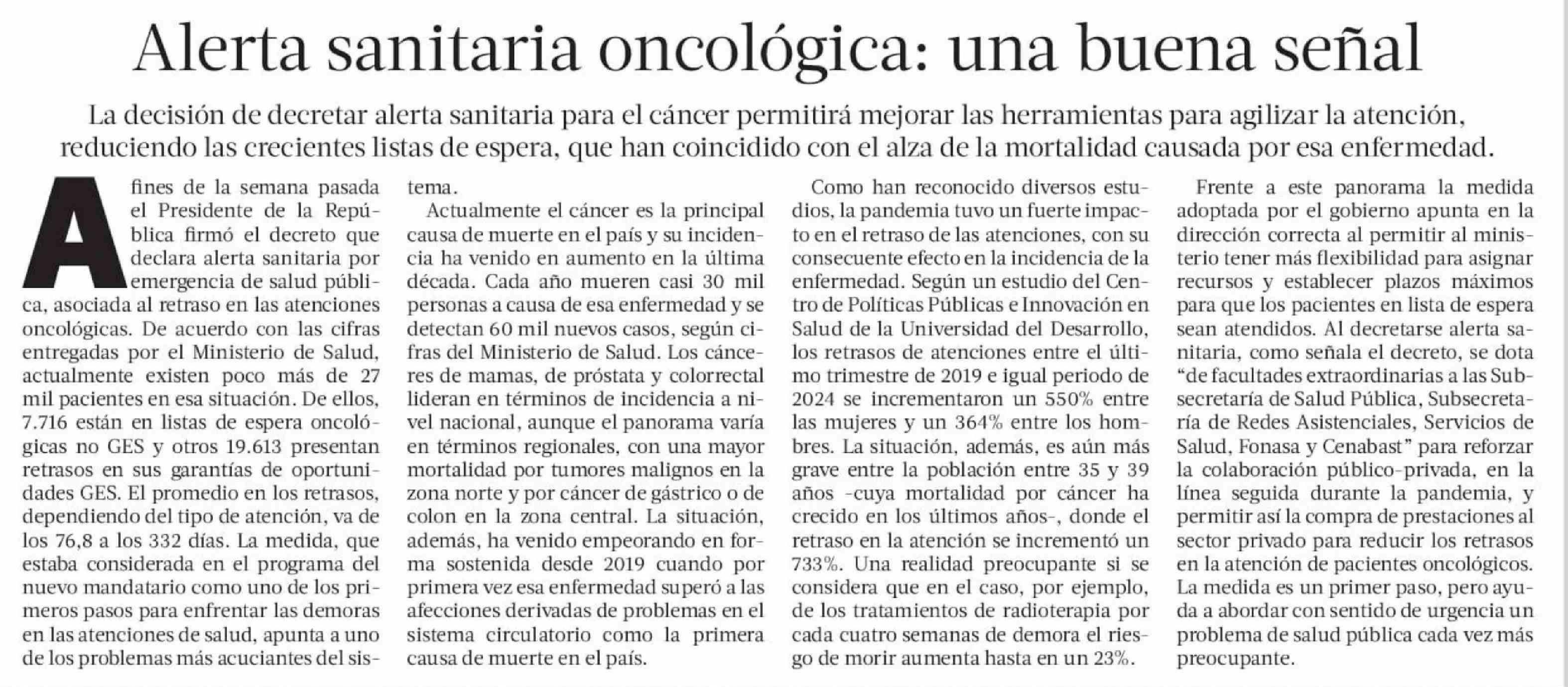 Título: Editorial: Alerta sanitaria oncológica: una buena señal