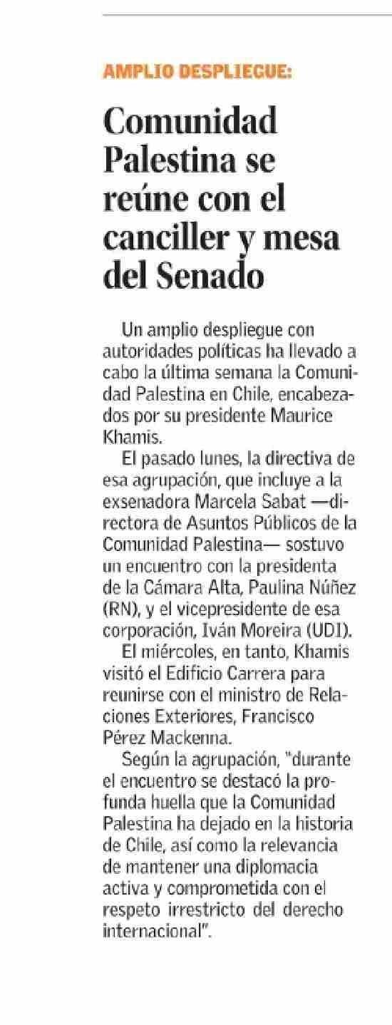 Comunidad Palestina se reúne con el canciller y mesa del Senado