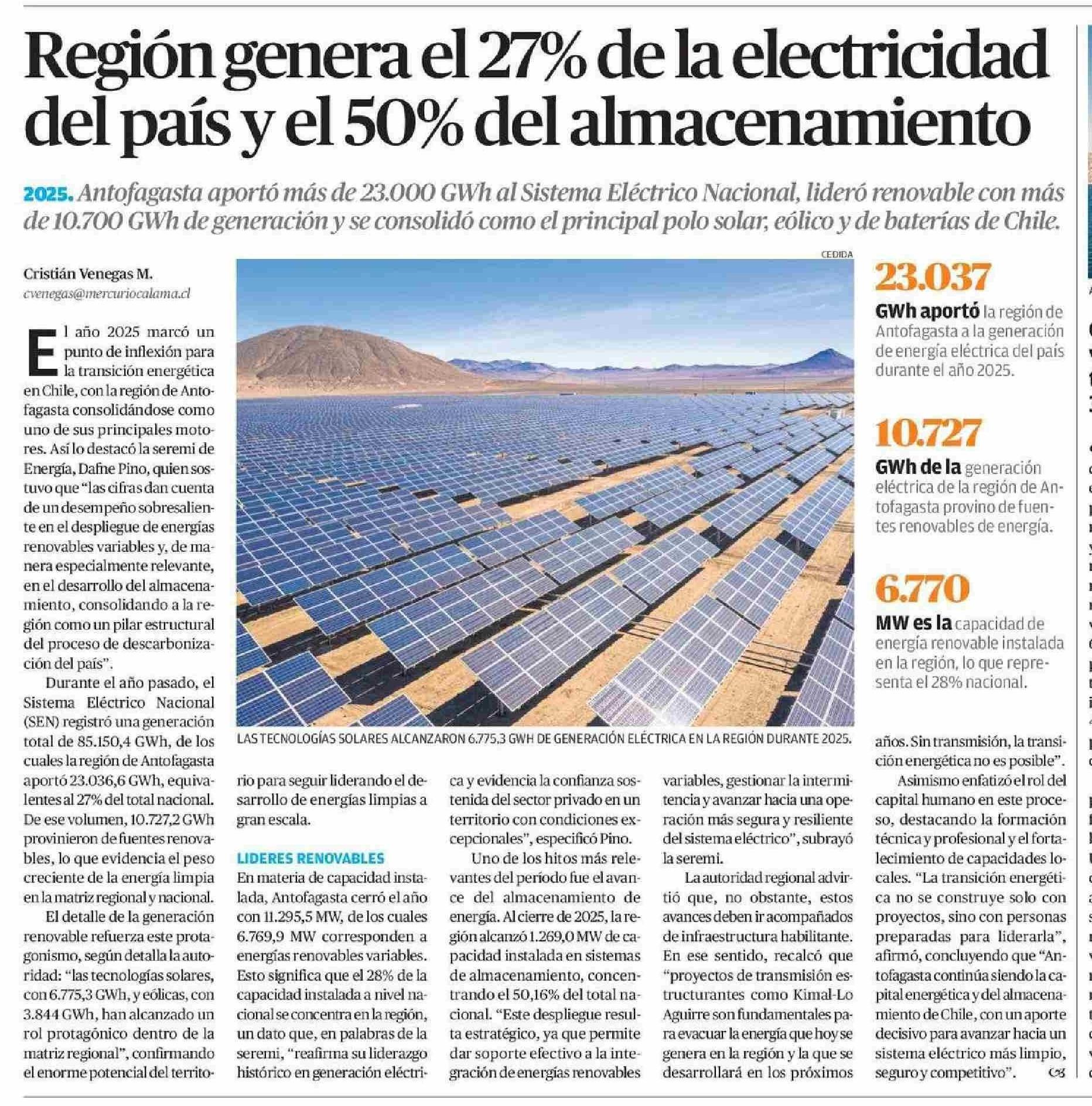 Región genera el 27% de la electricidad del país y el 50% del almacenamiento