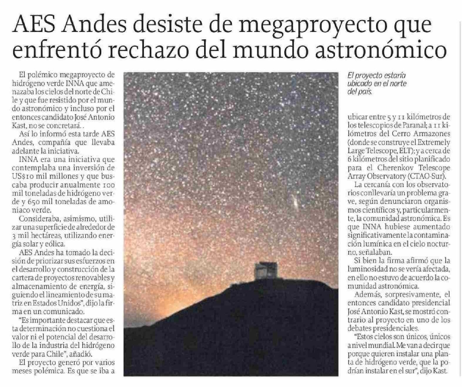 AES Andes desiste de megaproyecto que enfrentó rechazo del mundo astronómico