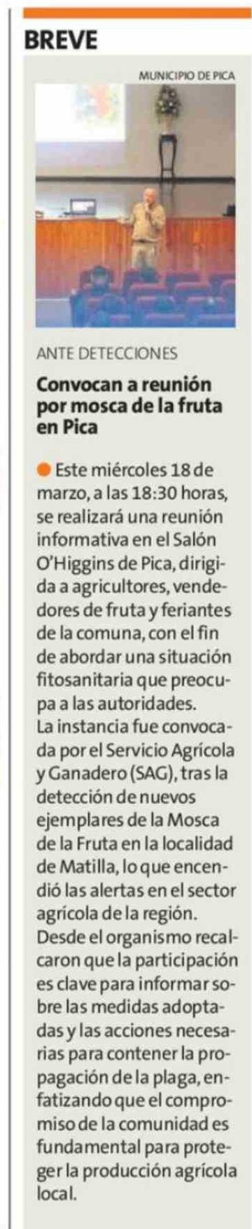 Convocan a reunión por mosca de la fruta en Pica