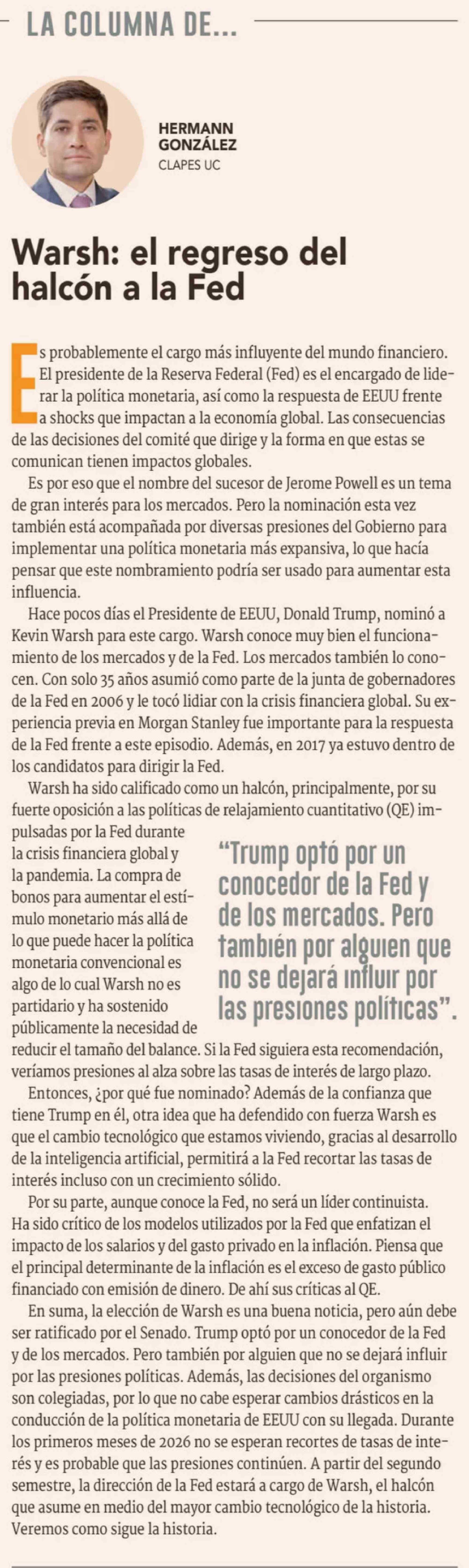 Columnas de Opinión: Warsh: el regreso del halcón a la Fed