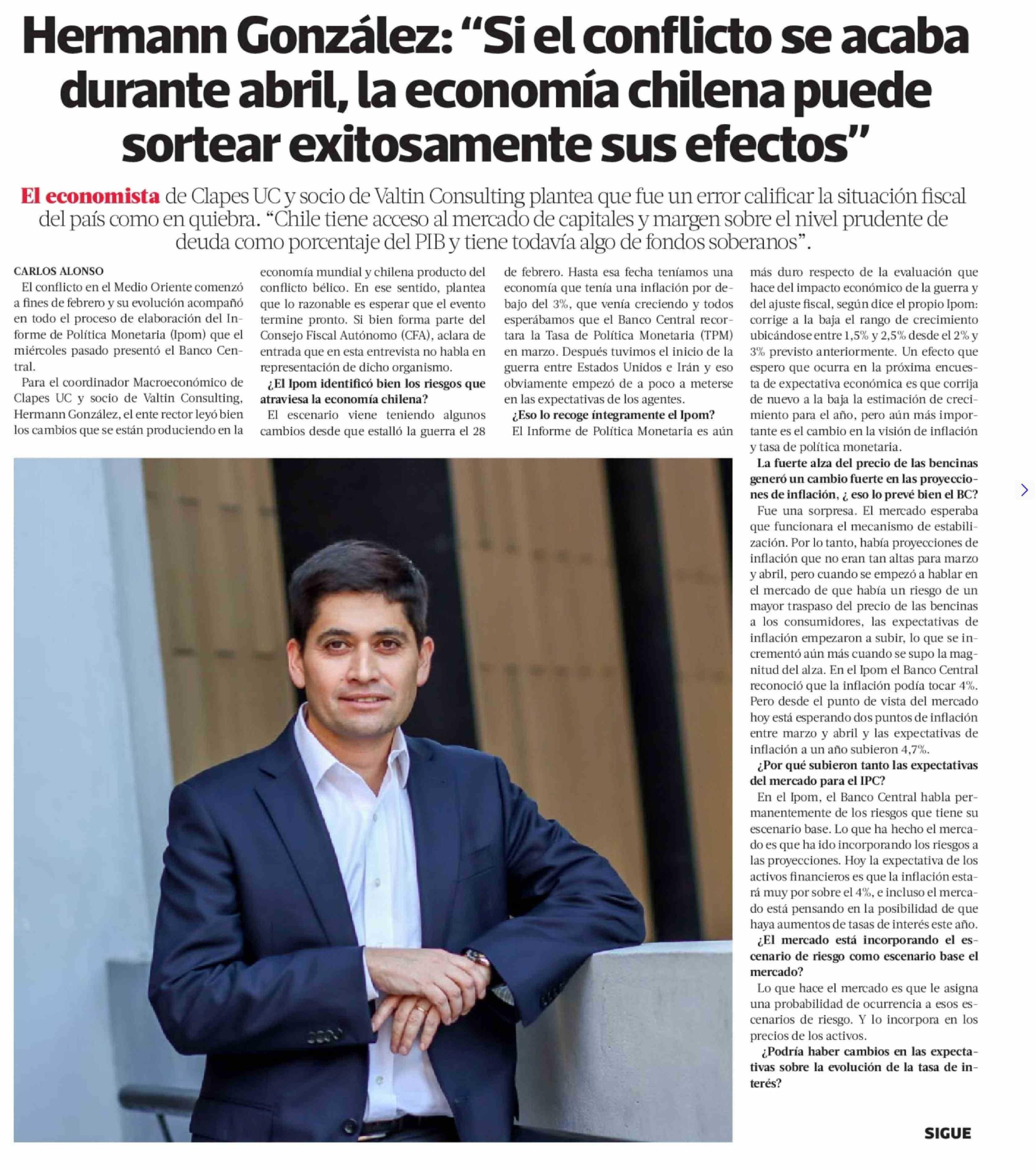 Título: Hermann González: "Si el conflicto se acaba durante abril, la economía chilena puede sortear exitosamente sus efectos"