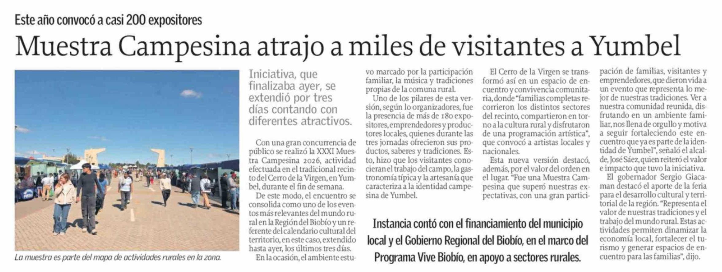 Muestra Campesina atrajo a miles de visitantes a Yumbel