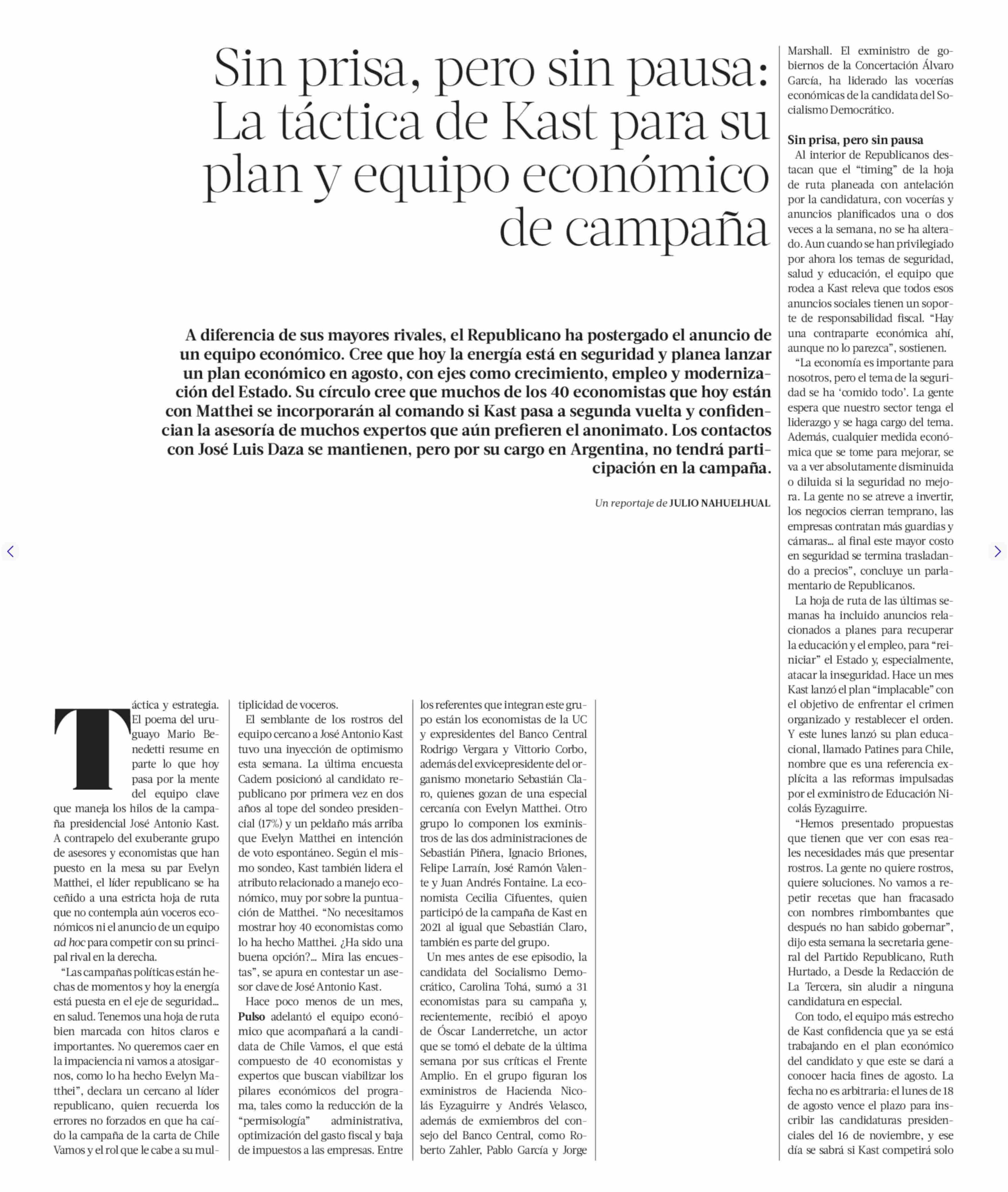 sin prisa, pero sin pausa: La táctica de kast para su plan y equipo económico de campaña