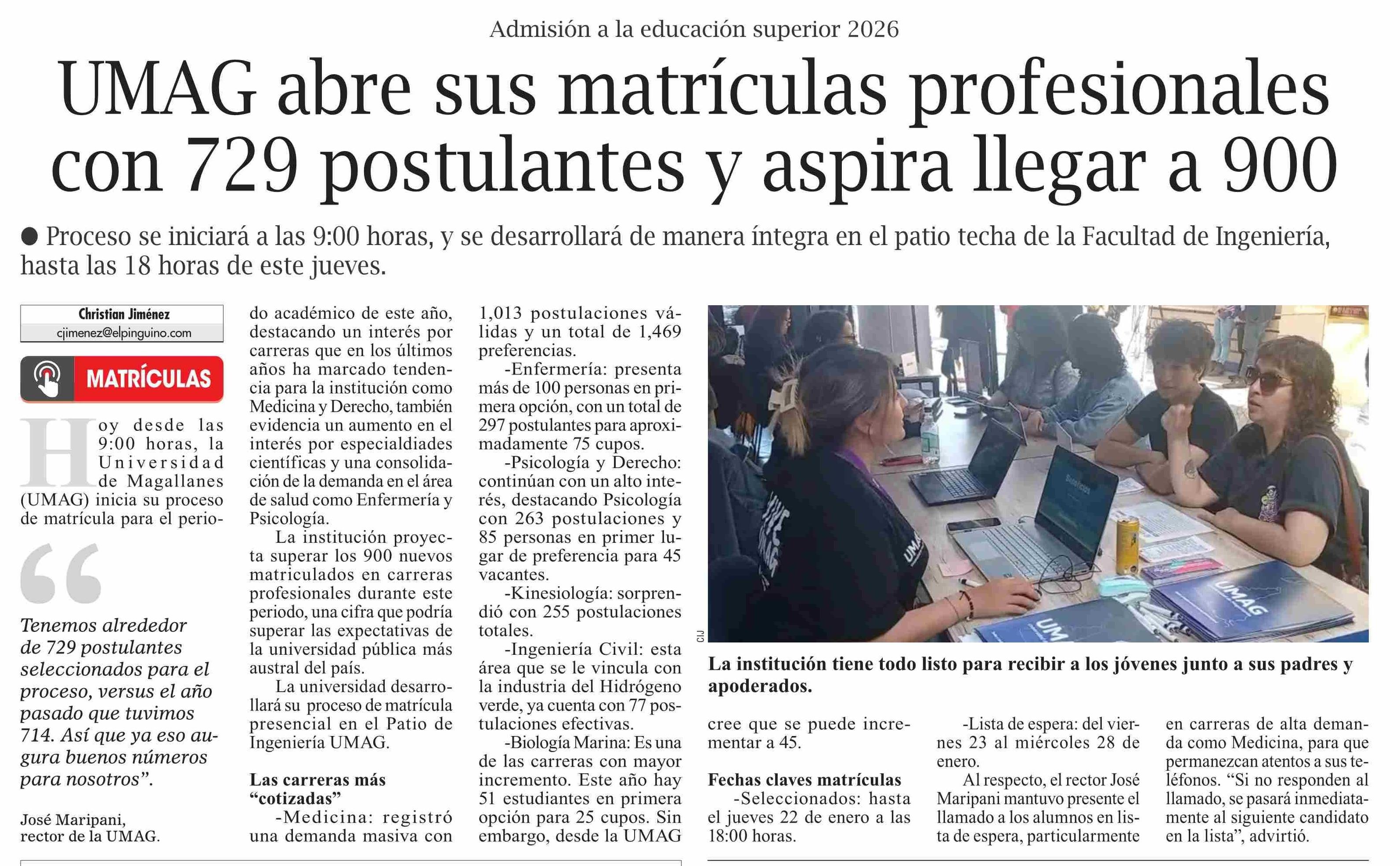 UMAG abre sus matrículas profesionales con 729 postulantes y aspira llegar a 900