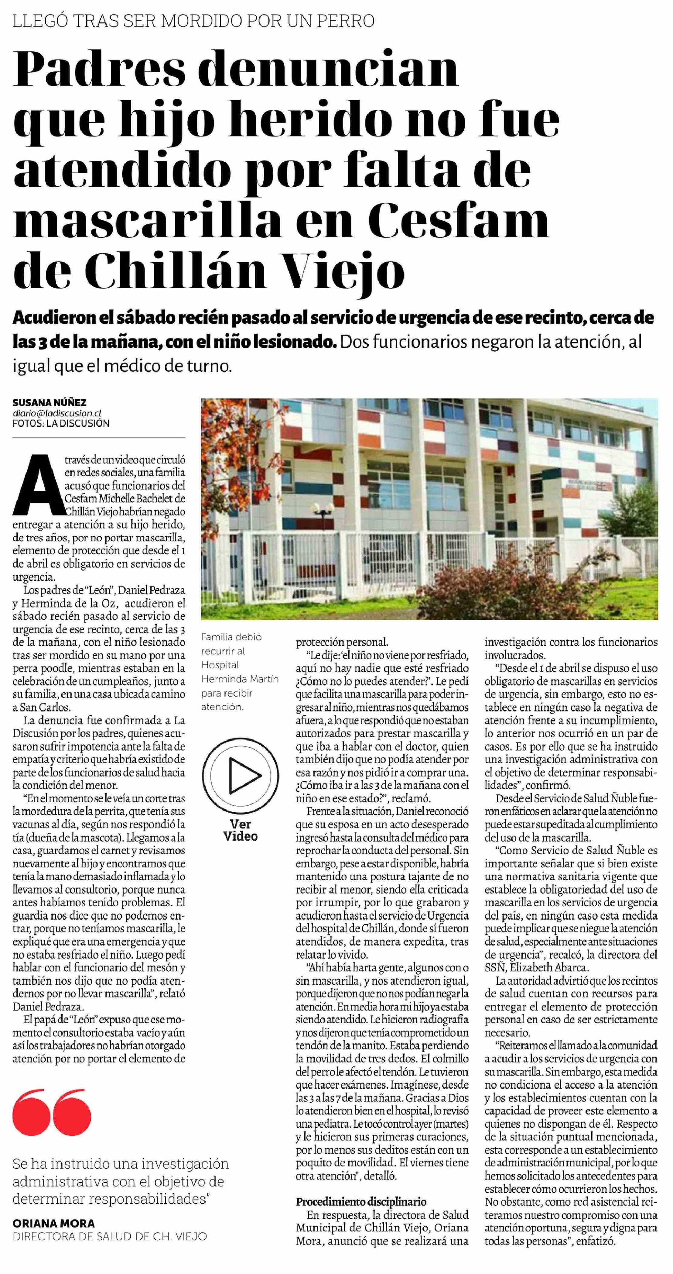 Padres denuncian que hijo herido no fue atendido por falta de mascarilla en Cesfam de Chillán Viejo