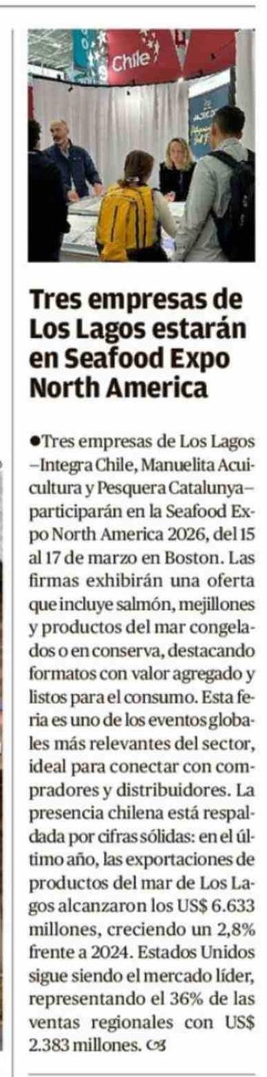 Tres empresas de Los Lagos estarán en Seafood Expo North America