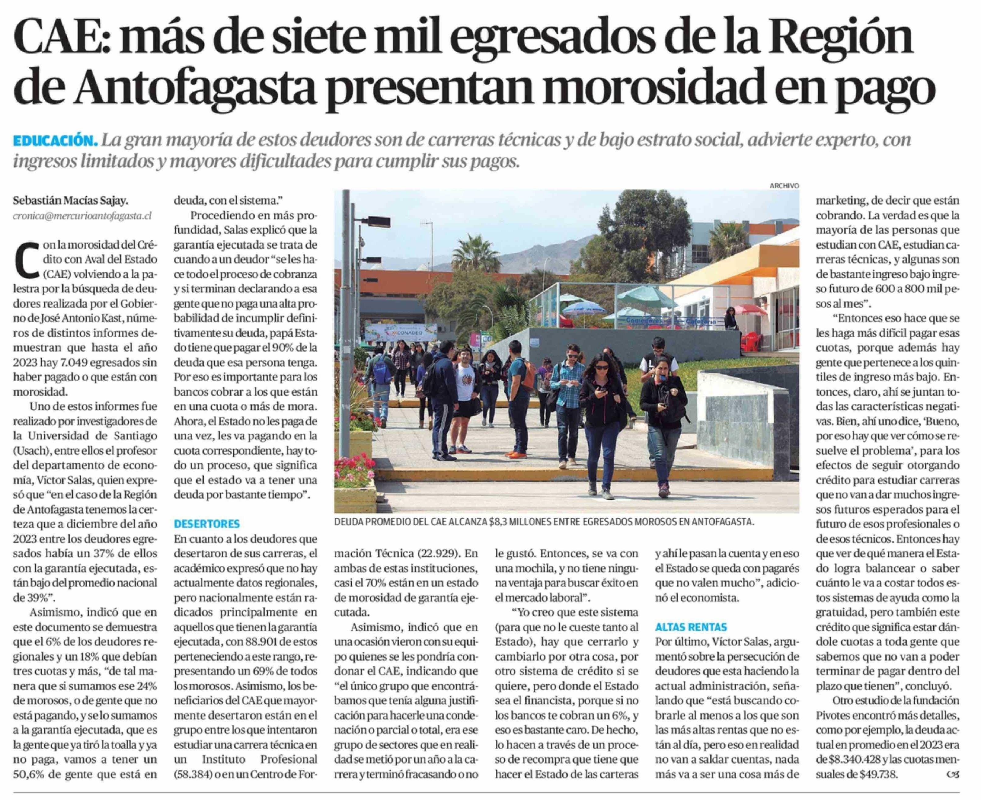 CAE: más de siete mil egresados de la Región de Antofagasta presentan morosidad en pago