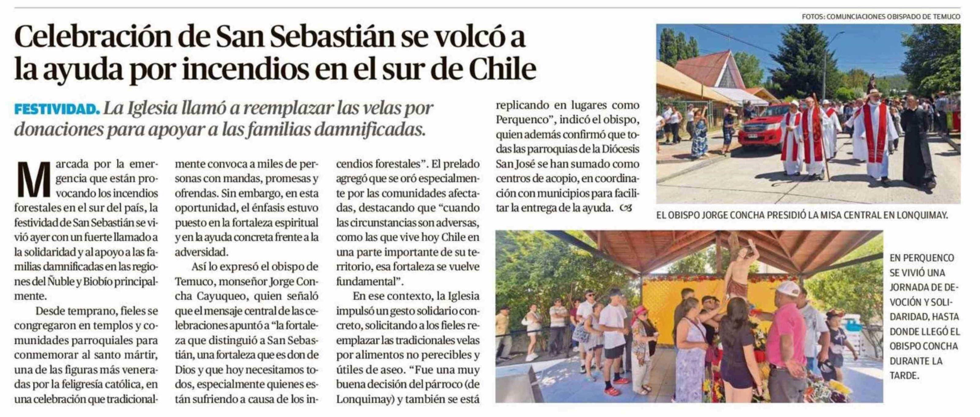 Celebración de San Sebastián se volcó a la ayuda por incendios en el sur de Chile