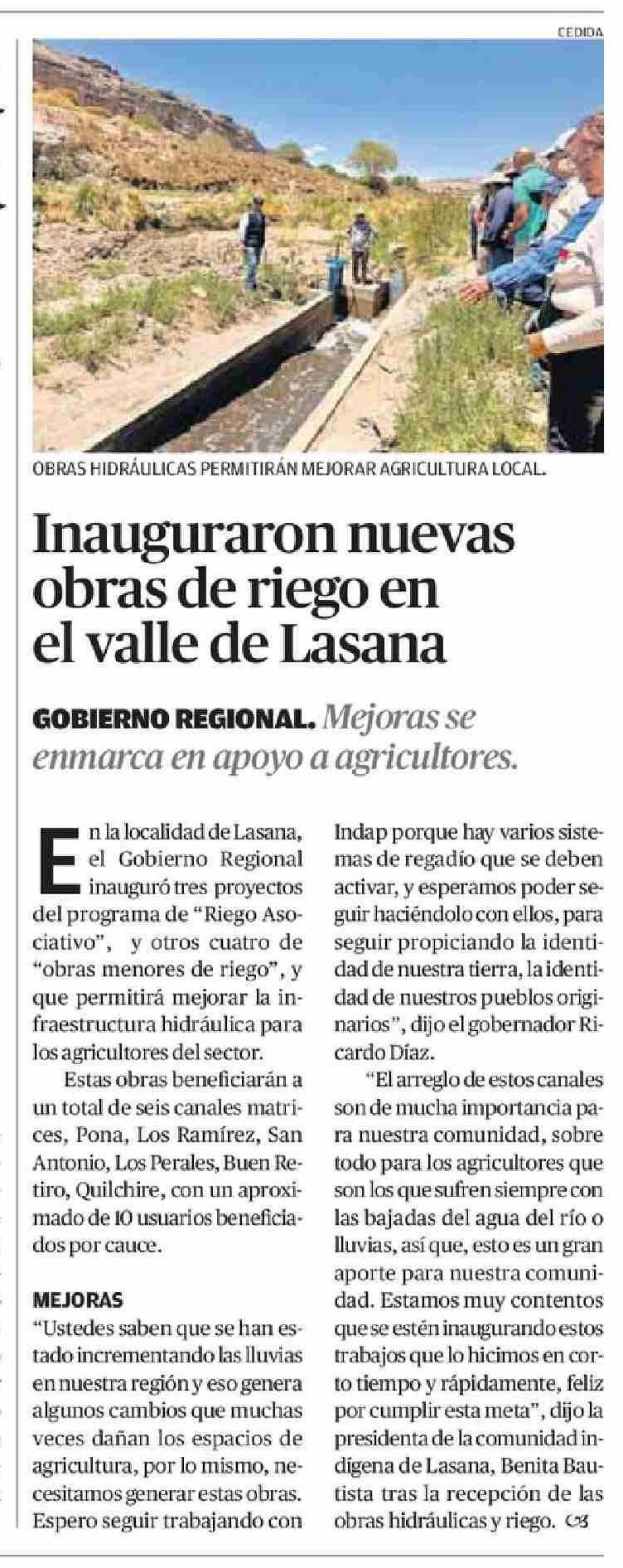 Inauguraron nuevas obras de riego en el valle de Lasana