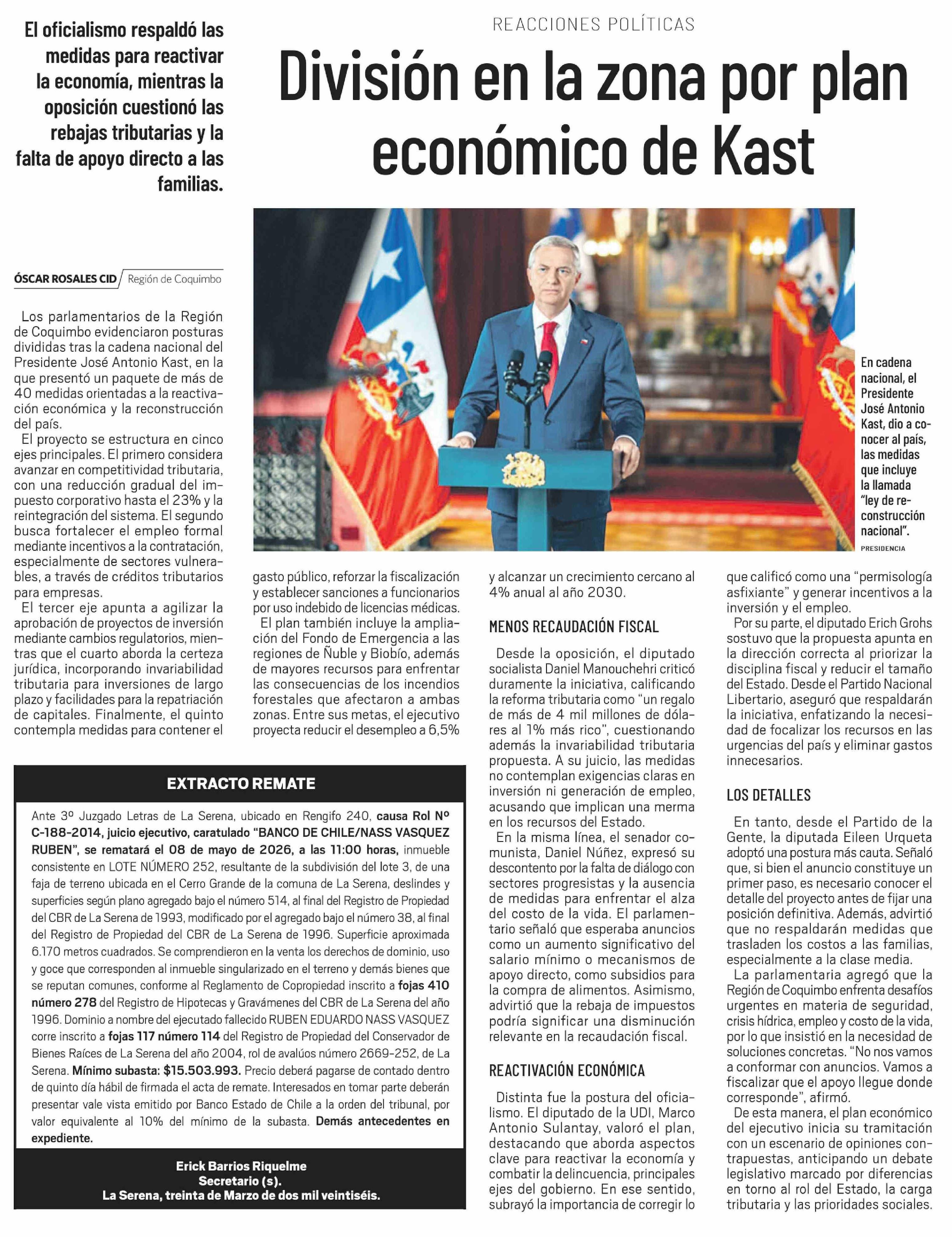 División en la zona por plan económico de Kast
