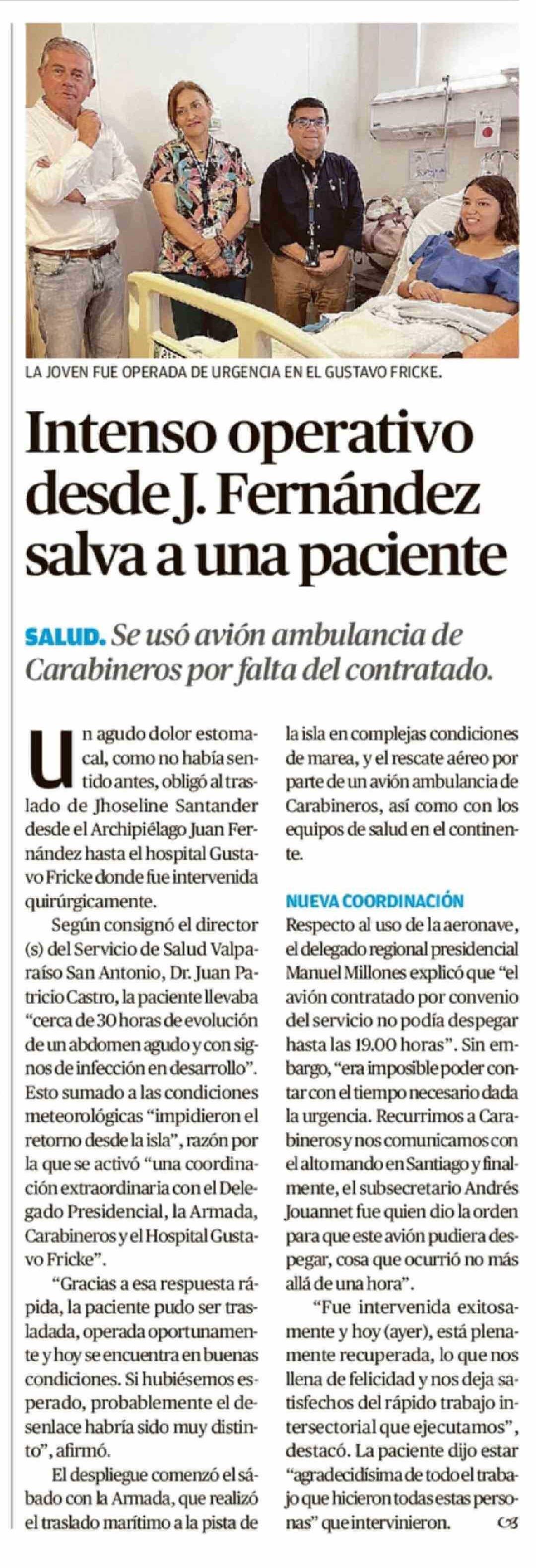 Título: Intenso operativo desde J. Fernández salva a una paciente