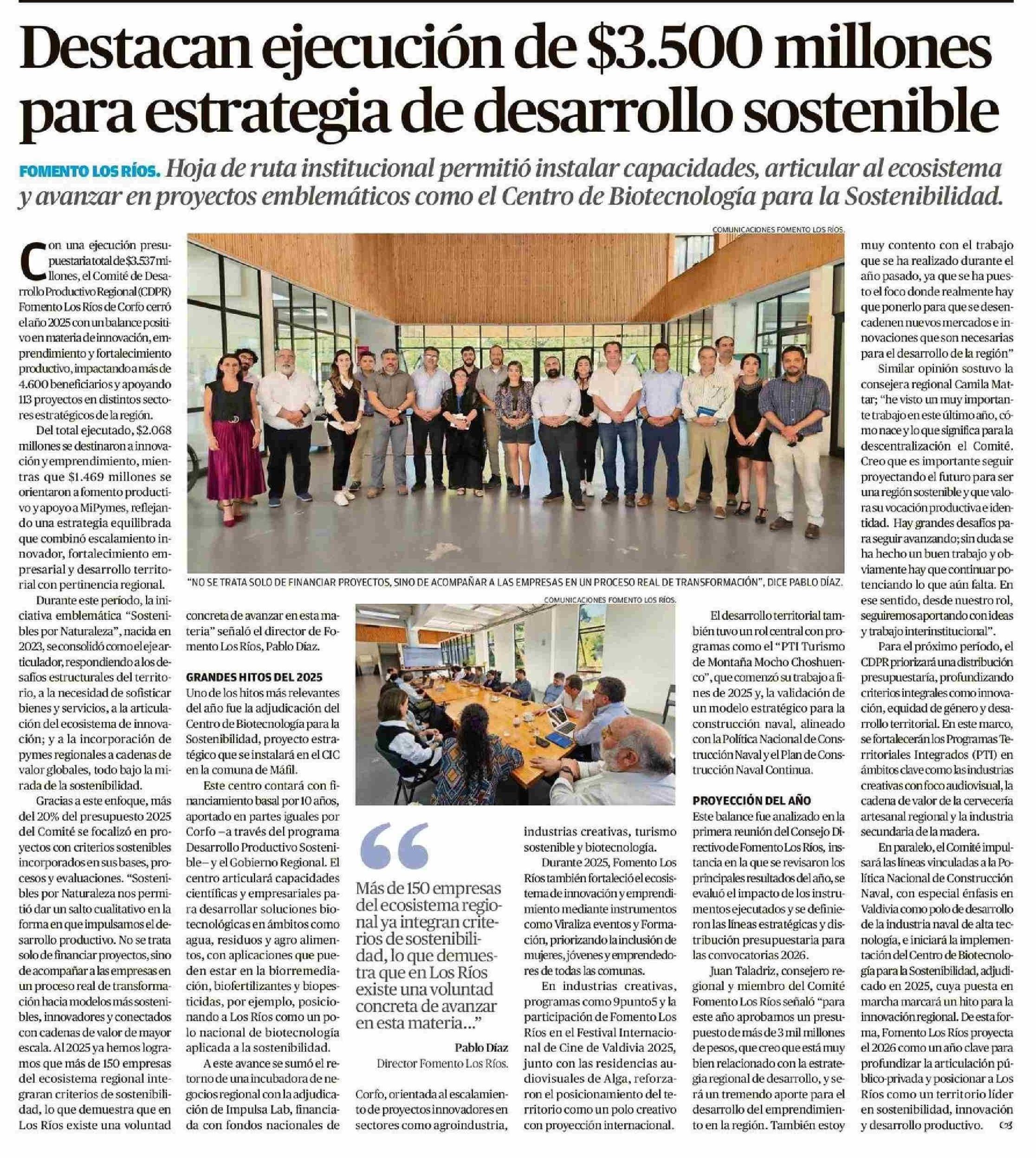 Destacan ejecución de $3.500 millones para estrategia de desarrollo sostenible