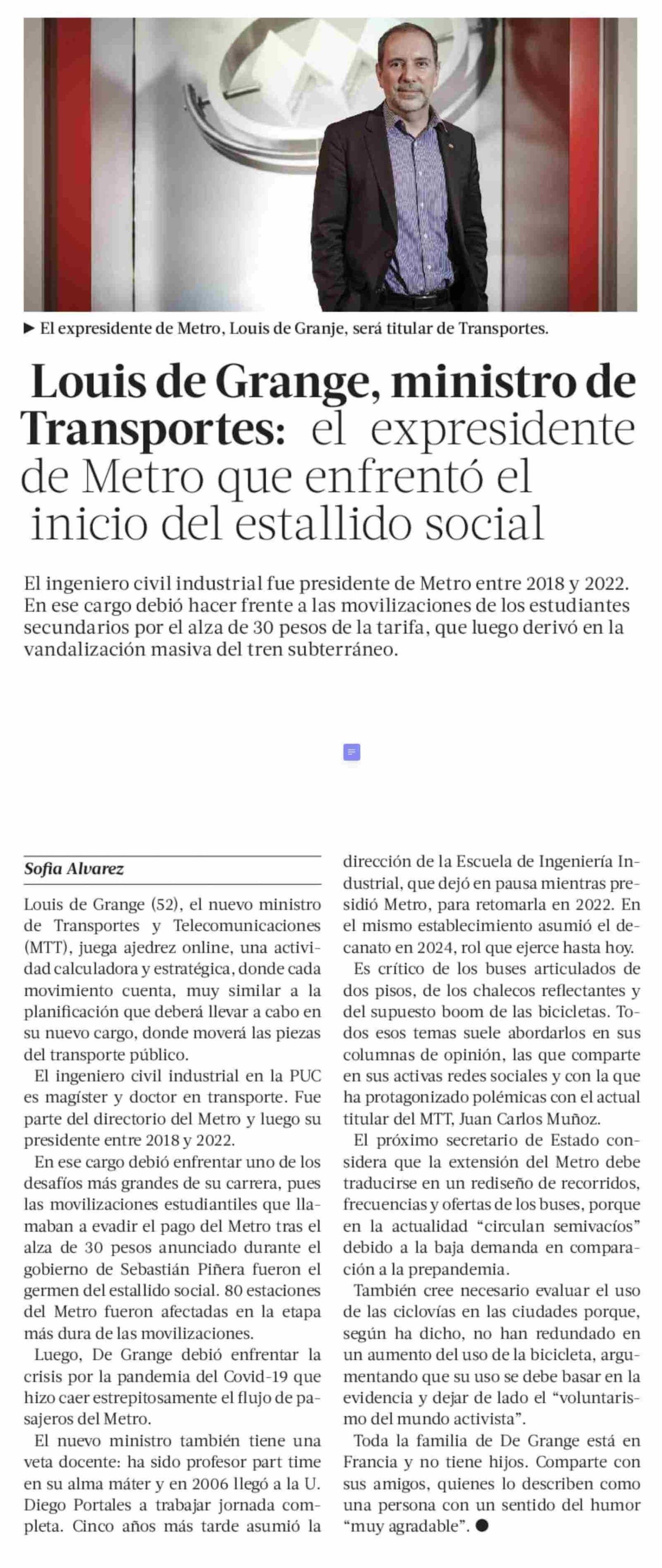 Louis de Grange, ministro de Transportes: el expresidente de Metro que enfrentó el inicio del estallido social