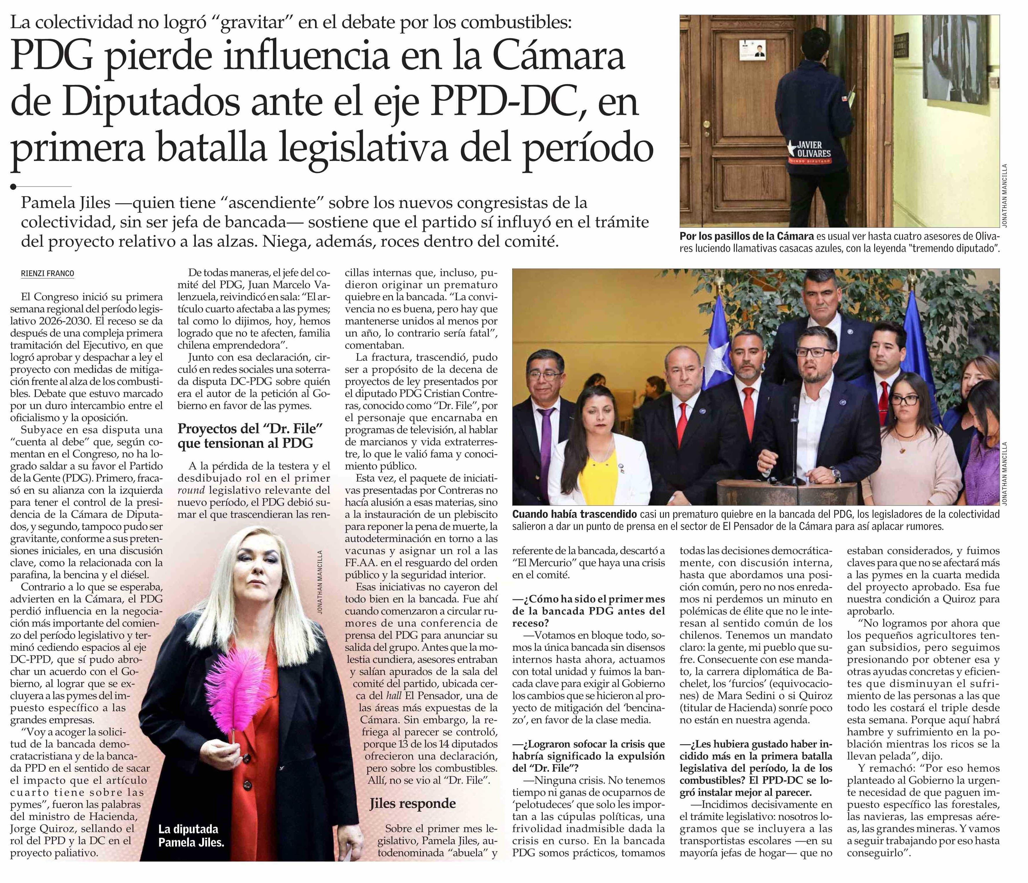 Título: PDG pierde influencia en la Cámara de Diputados ante el eje PPD-DC, en primera batalla legislativa del período