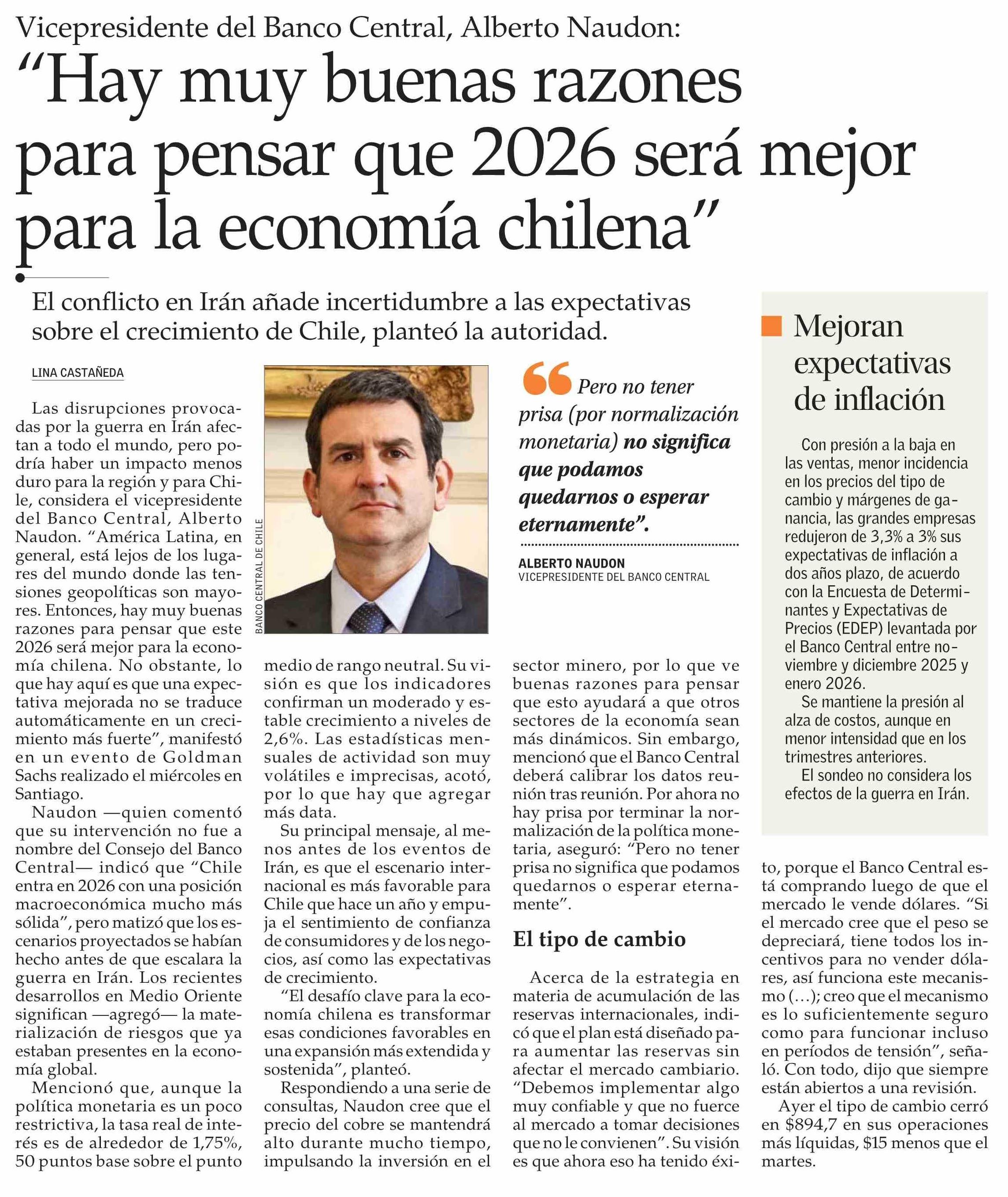 “Hay muy buenas razones para pensar que 2026 será mejor para la economía chilena”