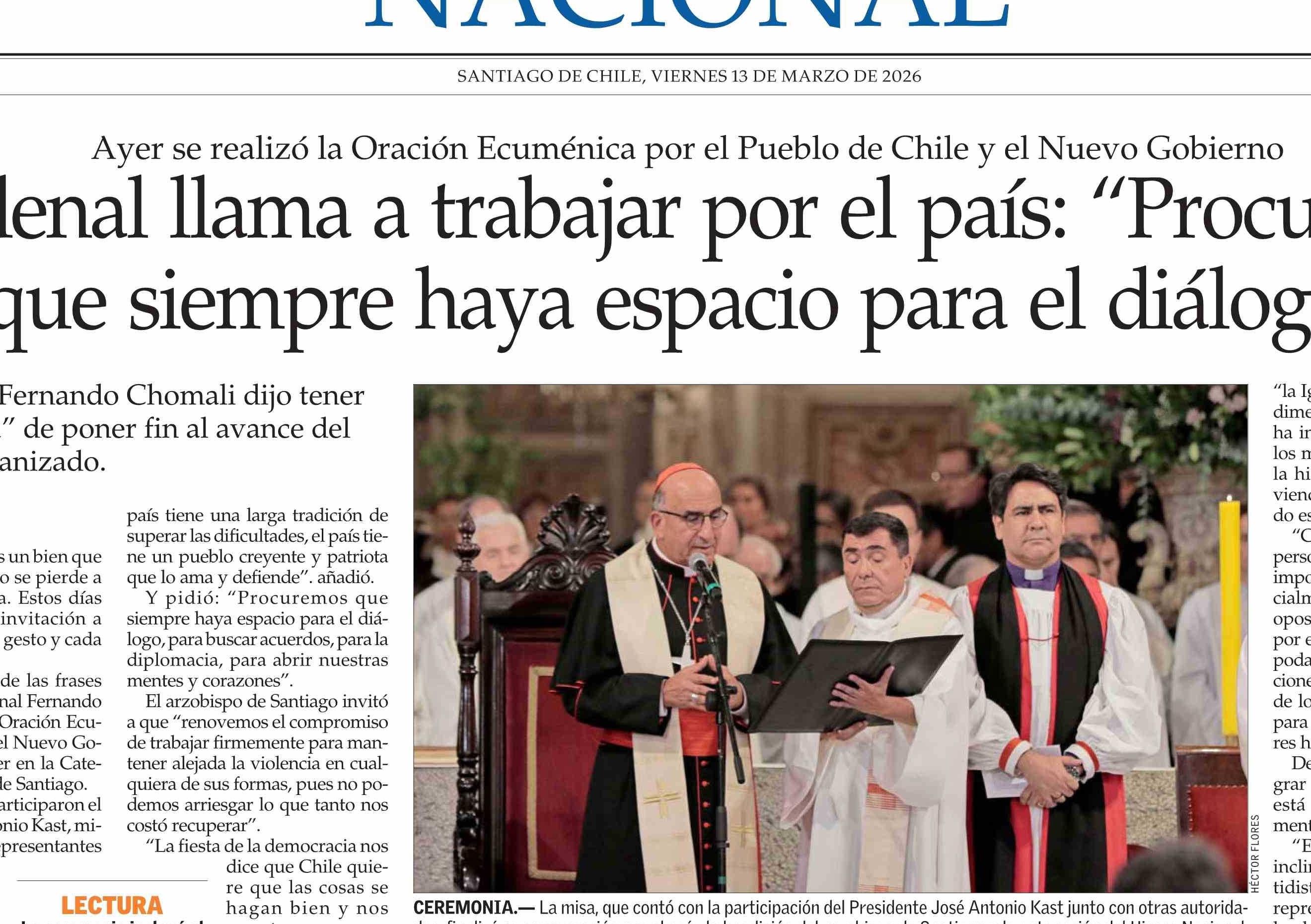 Cardenal llama a trabajar por el país: “Procuremos que siempre haya espacio para el diálogo”