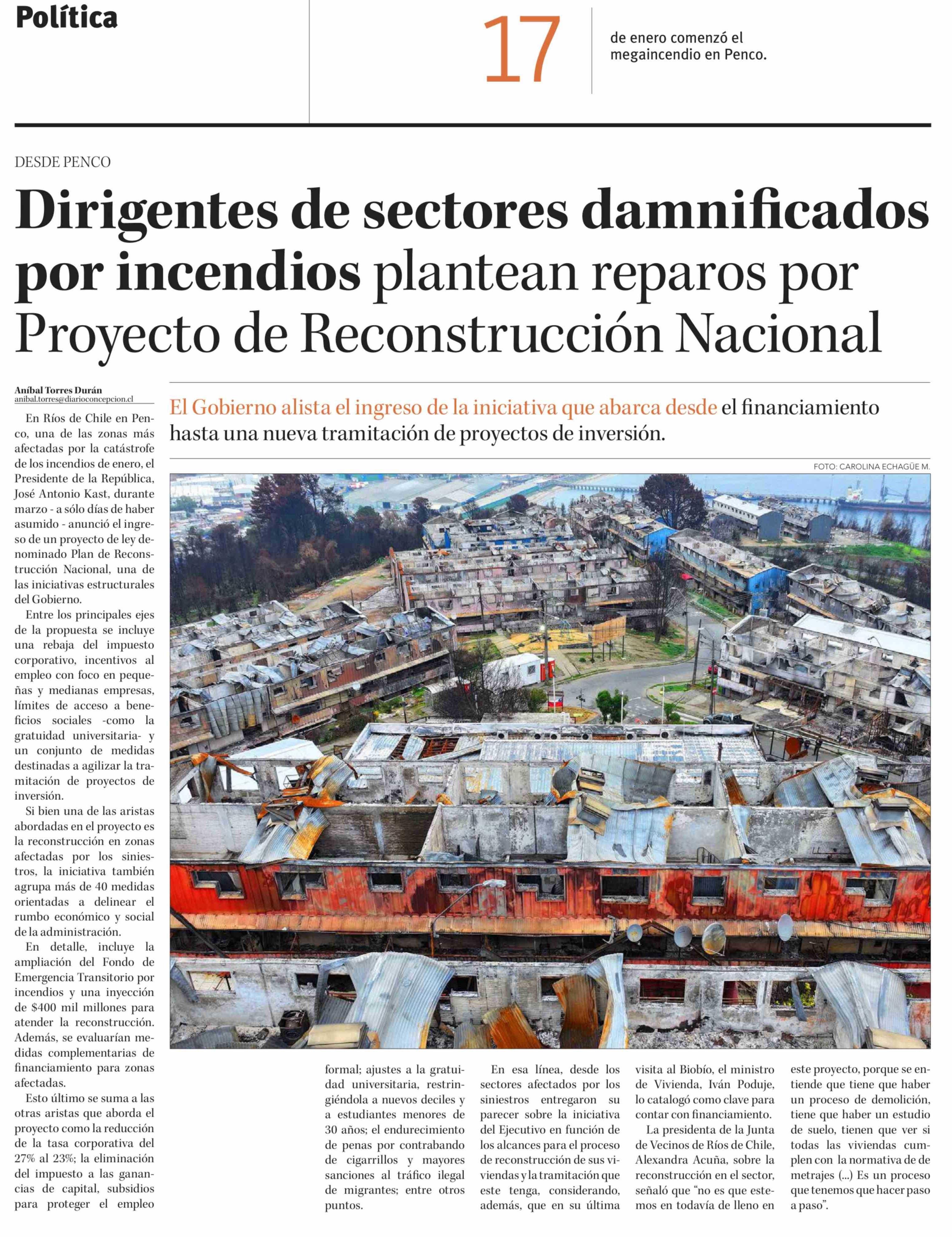 Dirigentes de sectores damnificados por incendios plantean reparos por Proyecto de Reconstrucción Nacional