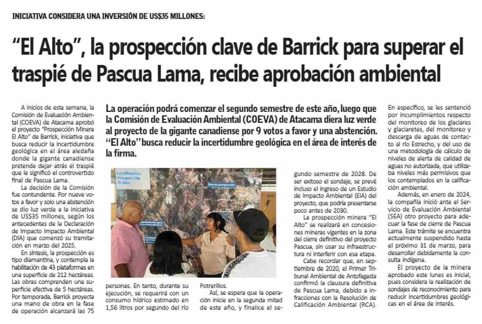 "El Alto", la prospección clave de Barrick para superar el traspié de Pascua Lama, recibe aprobación ambiental