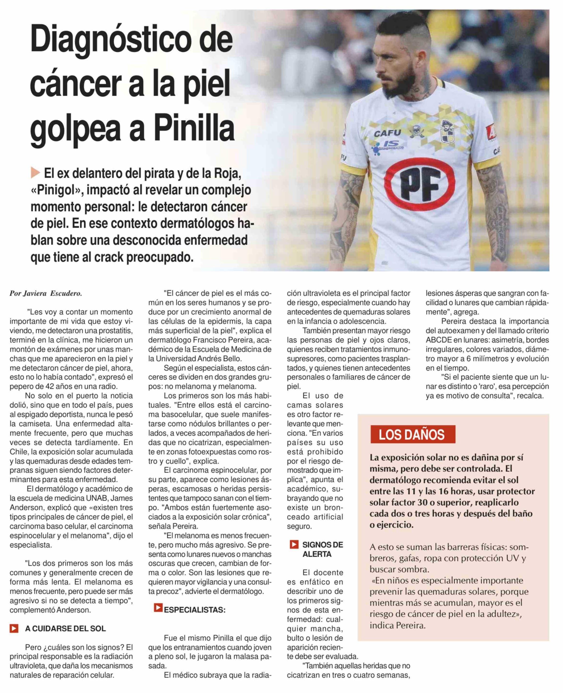 Diagnóstico de cáncer a la piel golpea a Pinilla