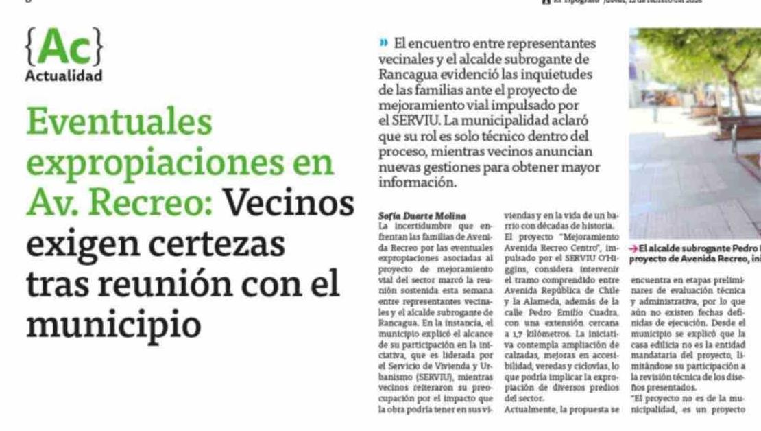 Eventuales expropiaciones en Av. Recreo: Vecinos exigen certezas tras reunión con el municipio