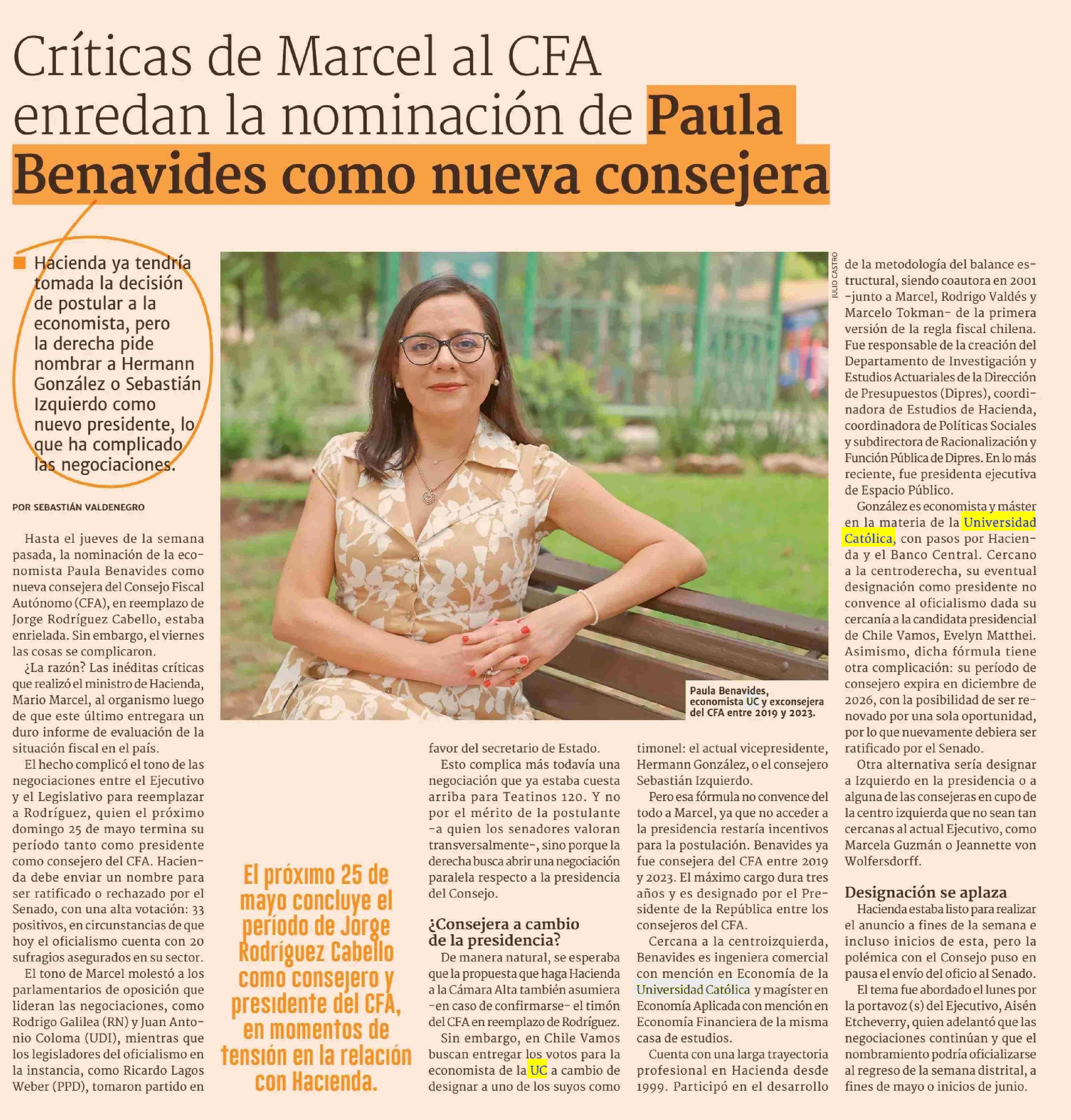 Críticas de Marcel al CFA enredan la nominación de Paula Benavides como nueva consejera