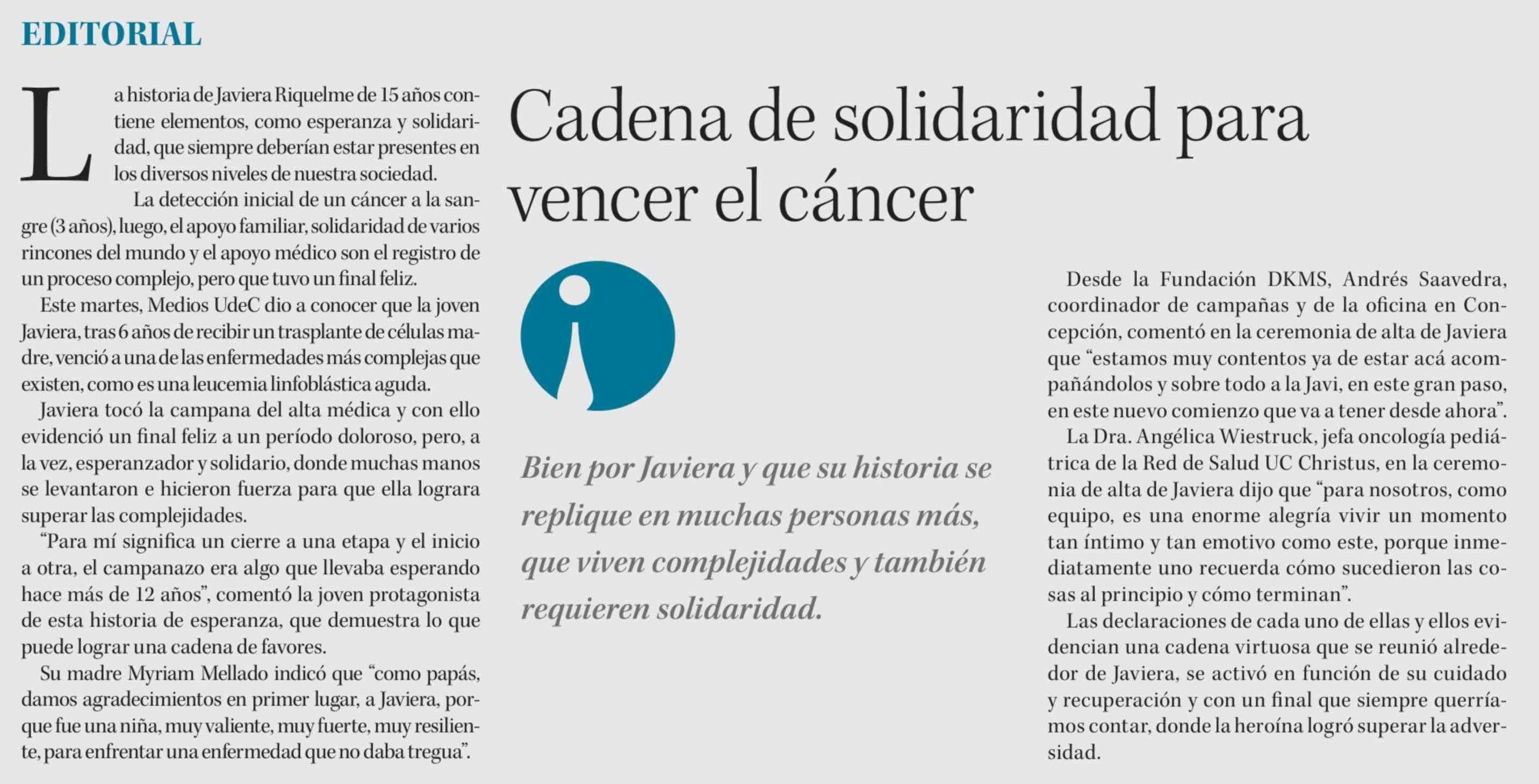 Título: Editorial: Cadena de solidaridad para vencer el cáncer
