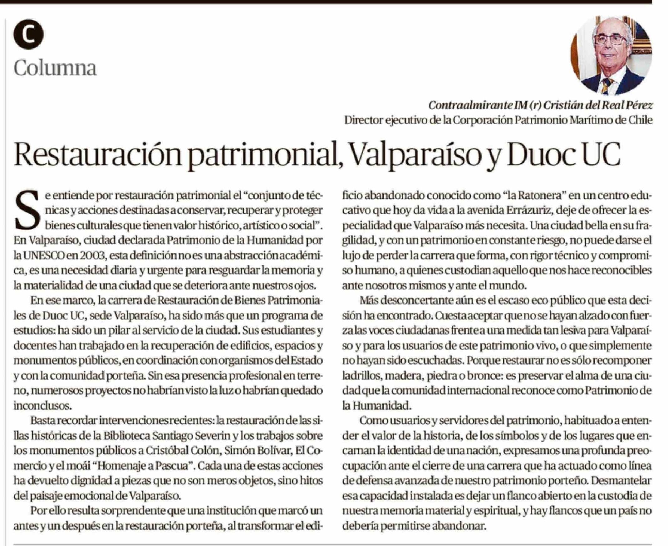 Columnas de Opinión: Restauración patrimonial, Valparaíso y Duoc UC
