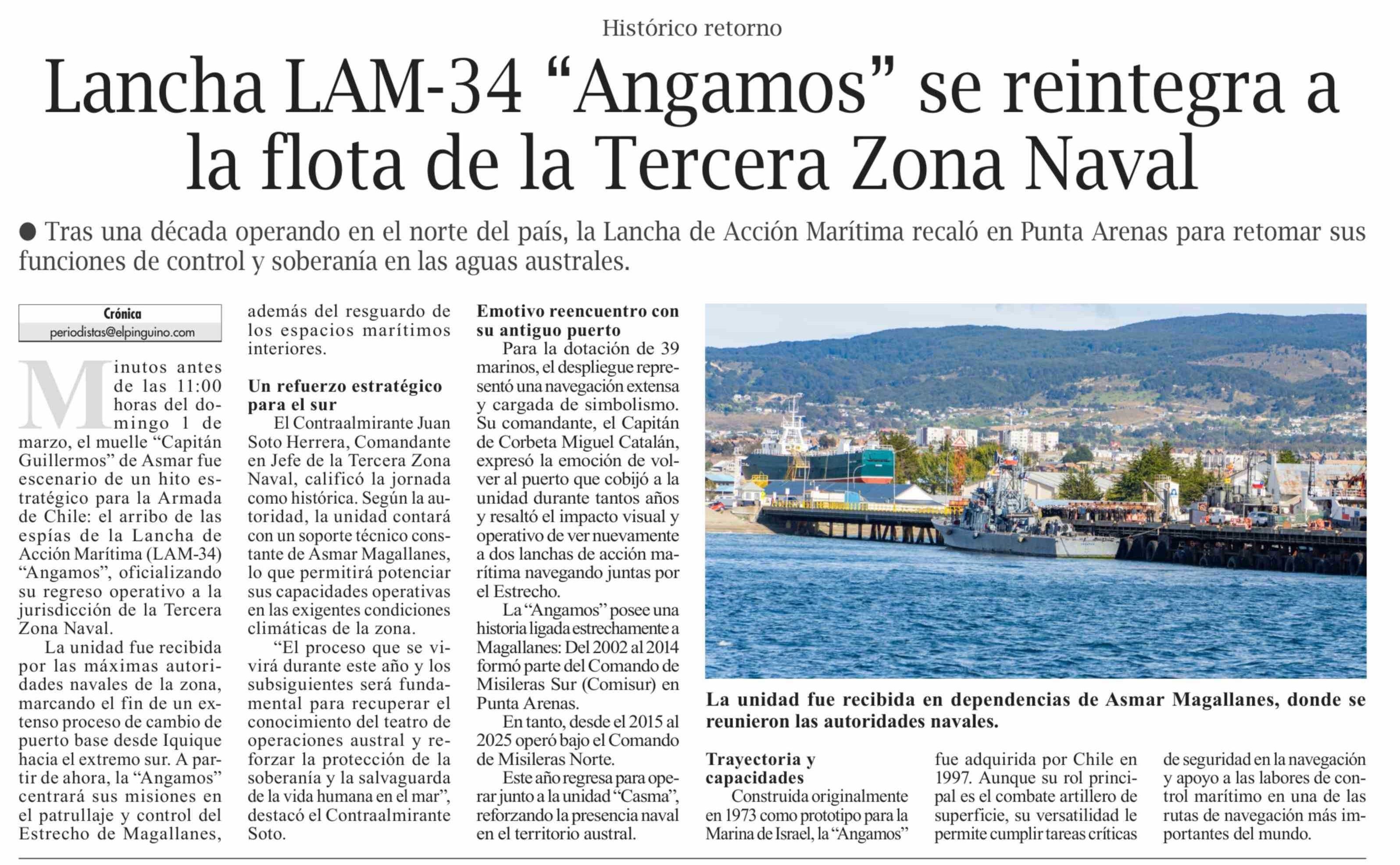 Lancha LAM-34 "Angamos" se reintegra a la flota de la Tercera Zona Naval