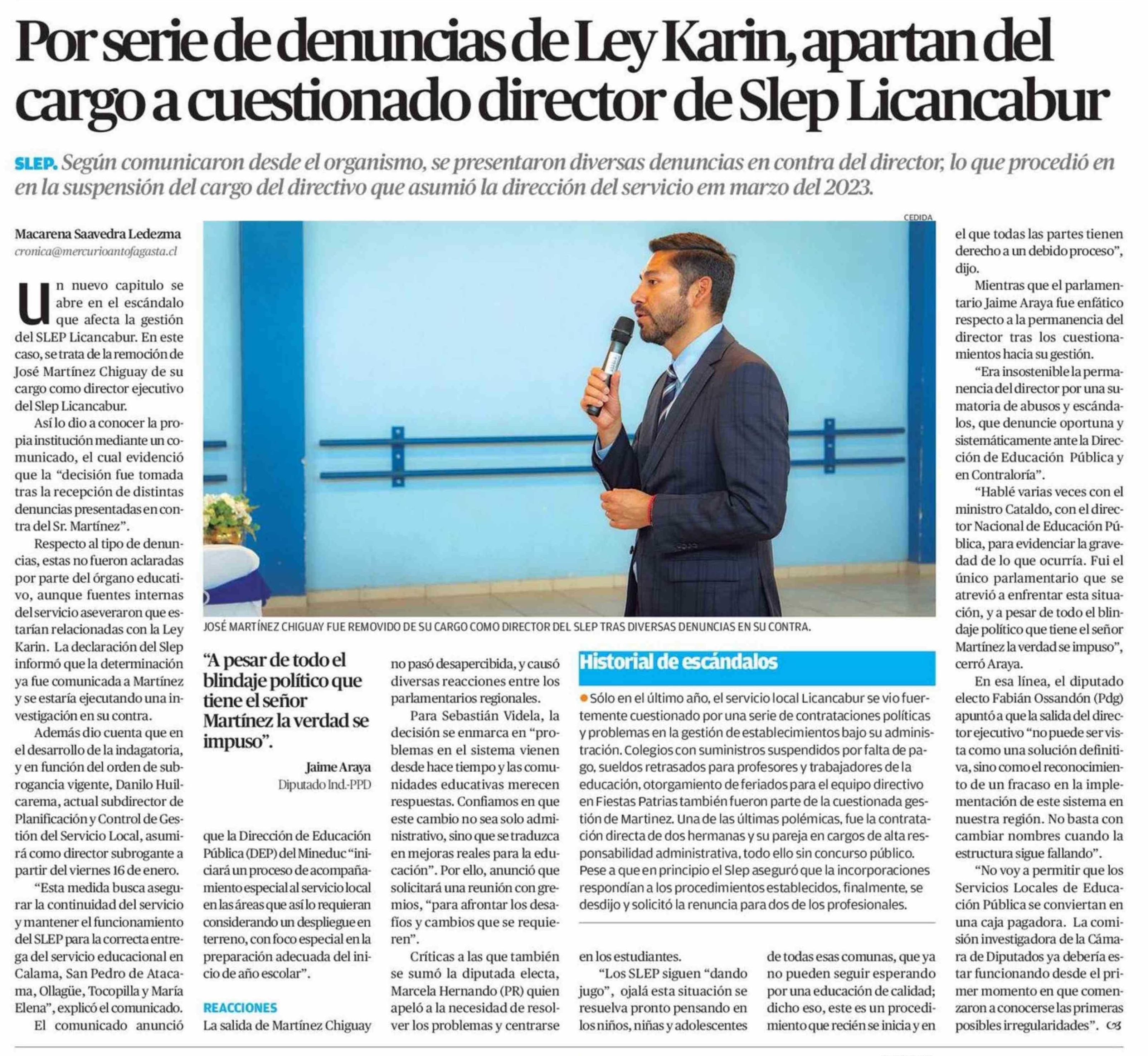 Por serie de denuncias de Ley Karin, apartan del cargo a cuestionado director de Slep Licancabur