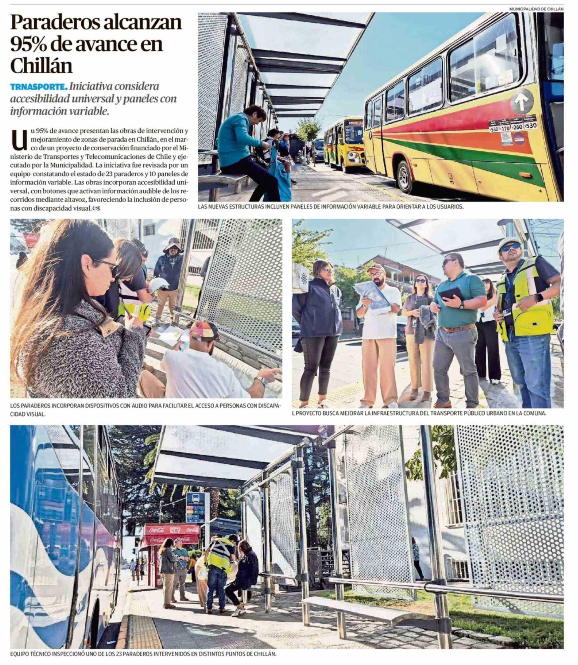 Paraderos alcanzan 95% de avance en Chillán
