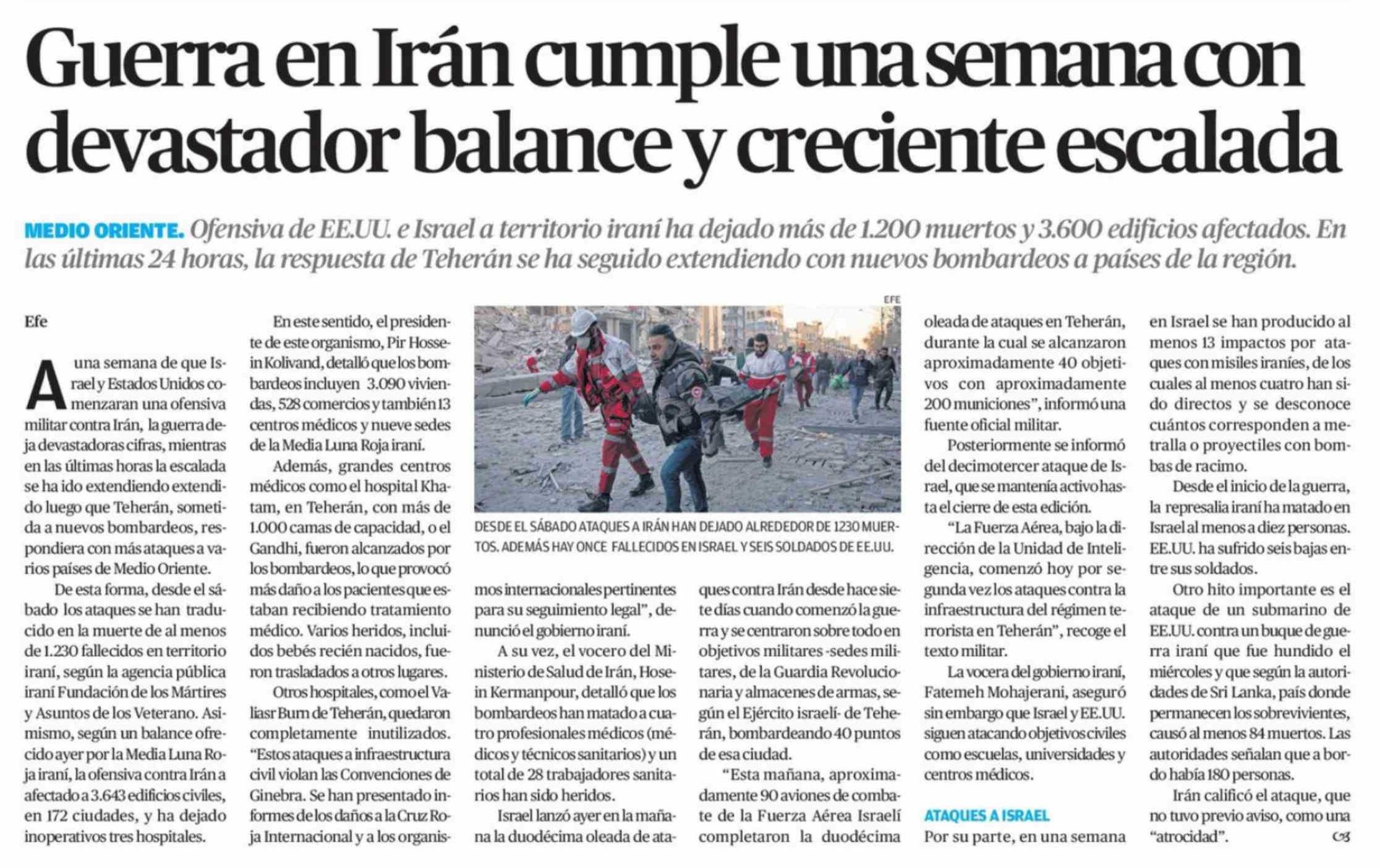 Título: Guerra en Iran cumple una semana con devastador balance y creciente escalada