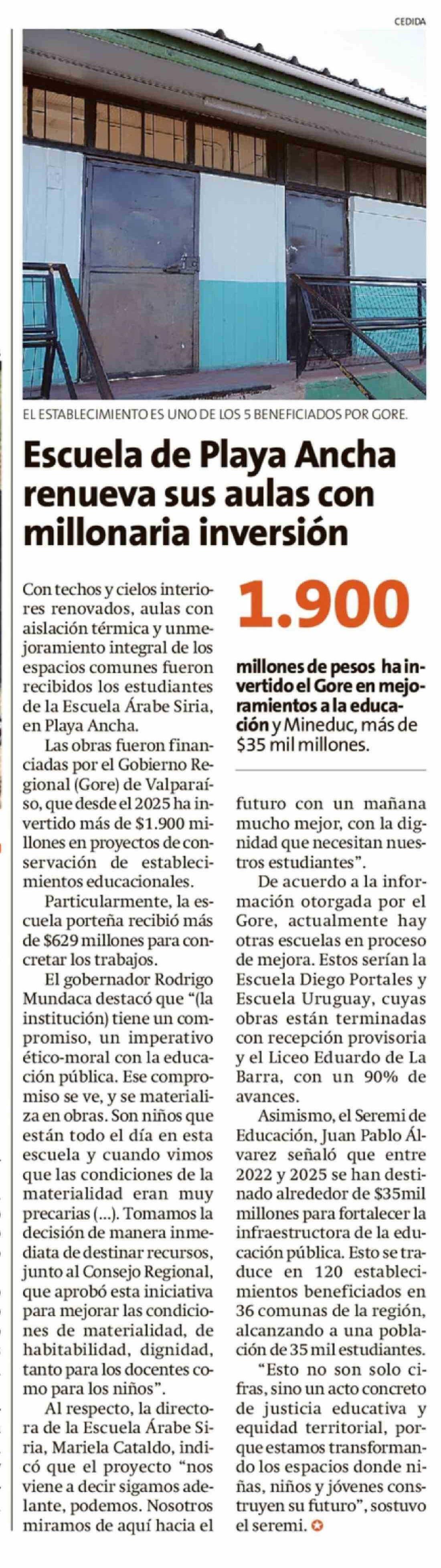 Escuela de Playa Ancha renueva sus aulas con millonaria inversión