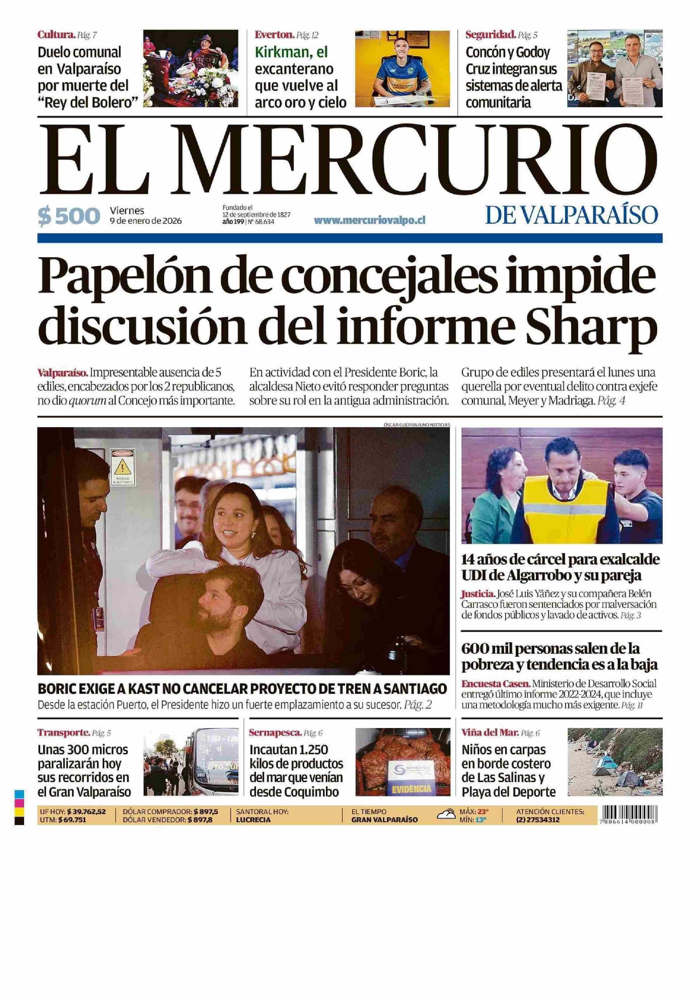 PORTADA EL MERCURIO DE VALPARAÍSO CHILE