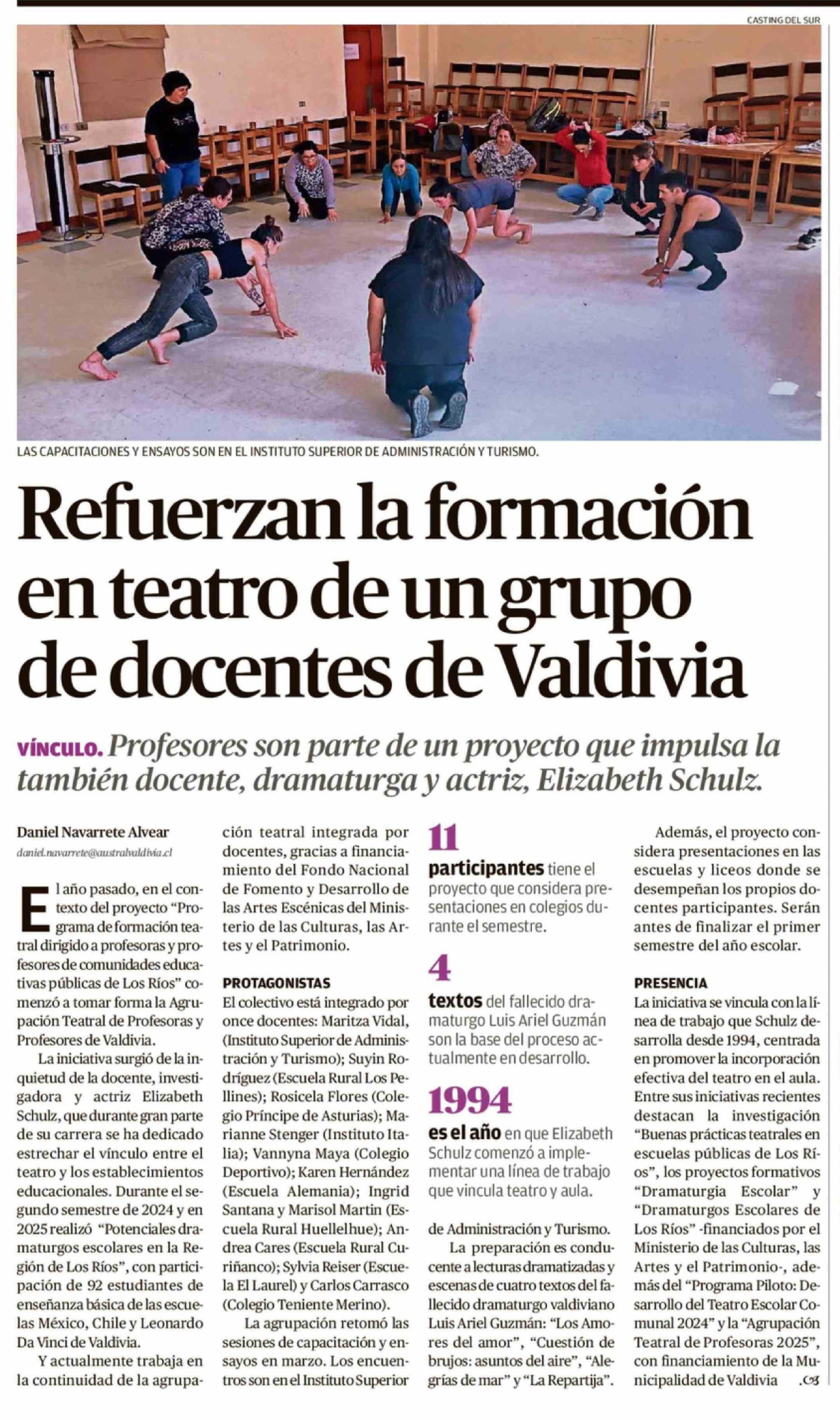 Refuerzan la formación en teatro de un grupo de docentes de Valdivia