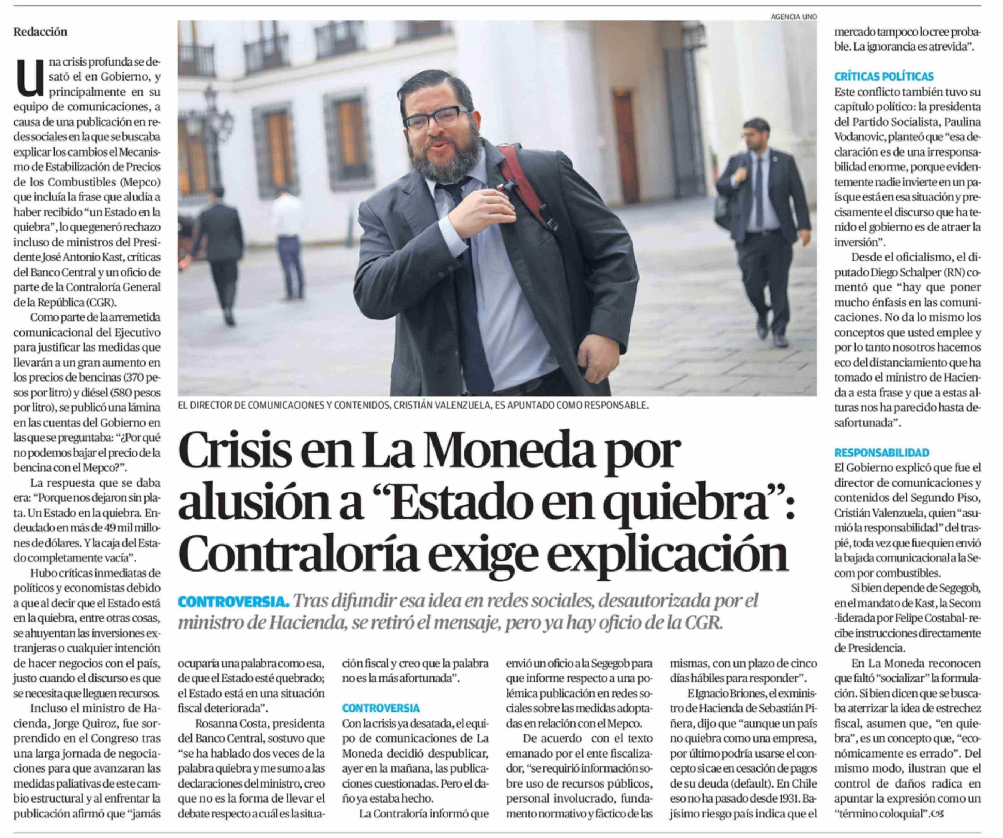 Crisis en La Moneda por alusión a "Estado en quiebra": Contraloría exige explicación