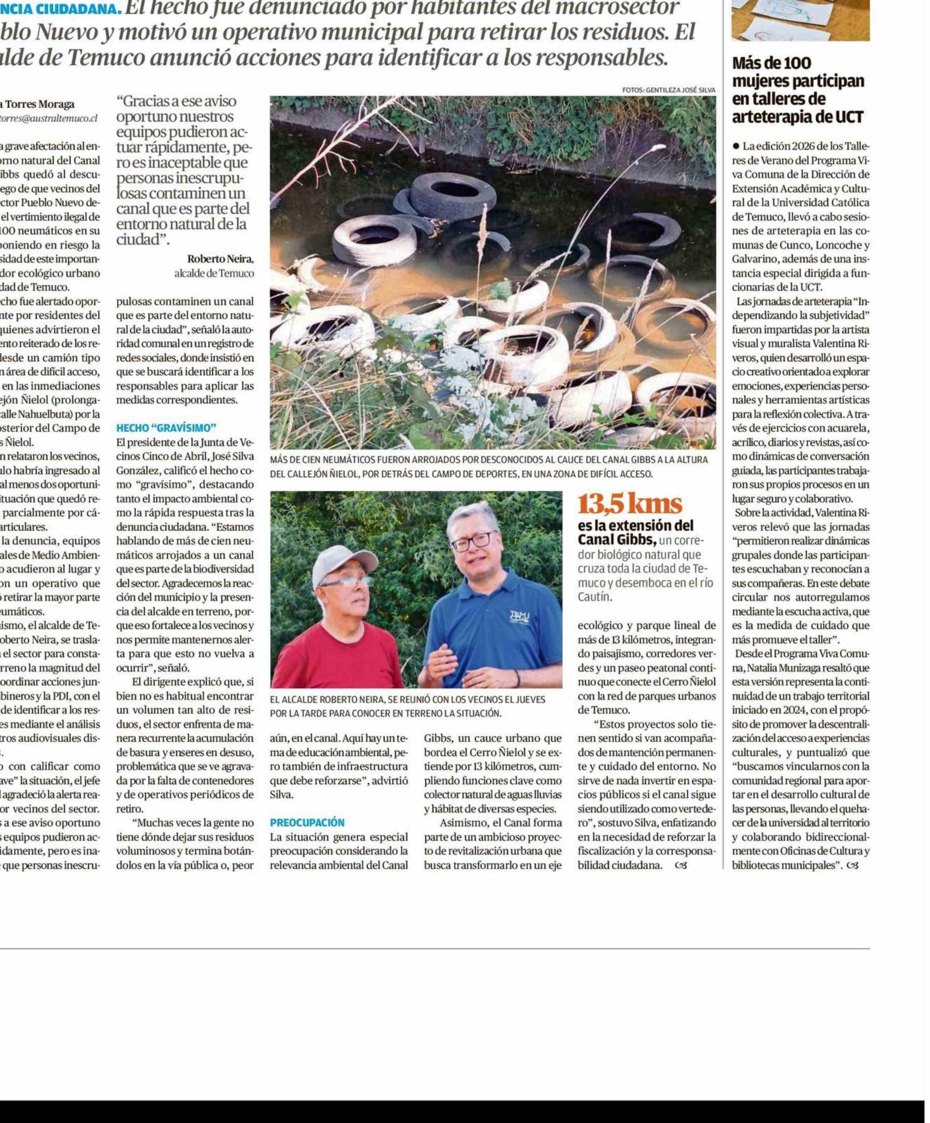 Vecinos alertan sobre grave atentado ambiental: más de 100 neumáticos fueron arrojados al Canal Gibbs