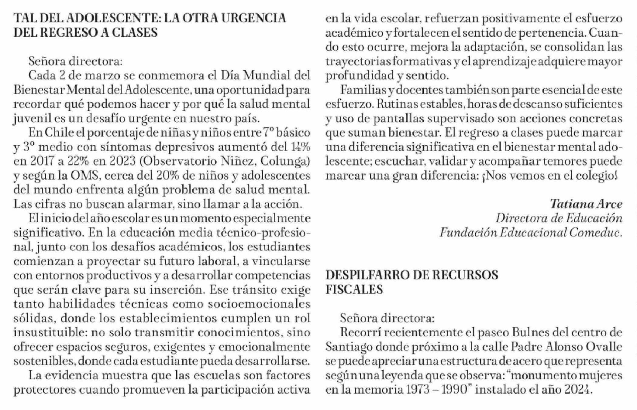 Cartas: TAL DEL ADOLESCENTE: LA OTRA URGENCIA DEL REGRESO A CLASES