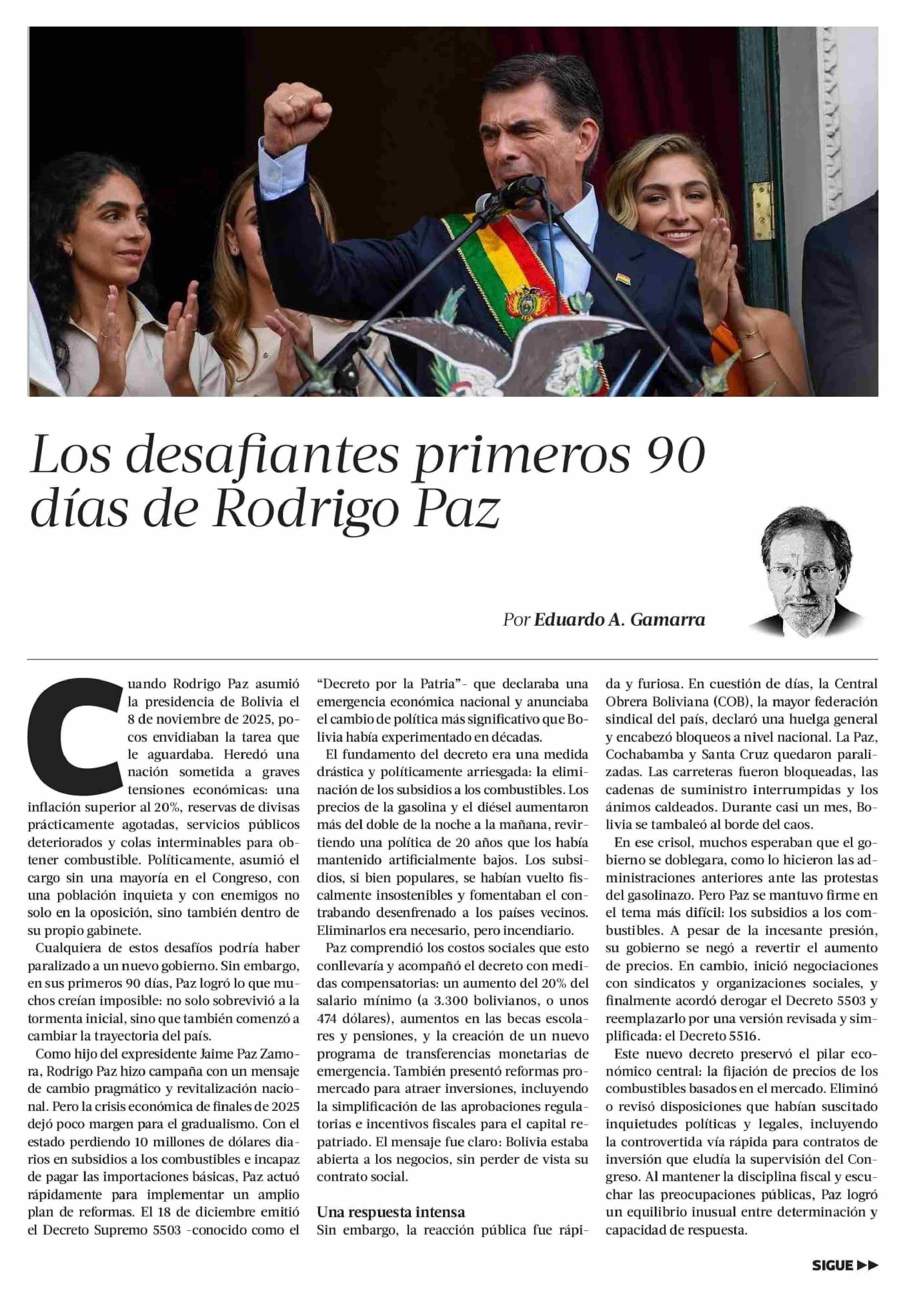 Los desafiantes primeros 90 días de Rodrigo Paz