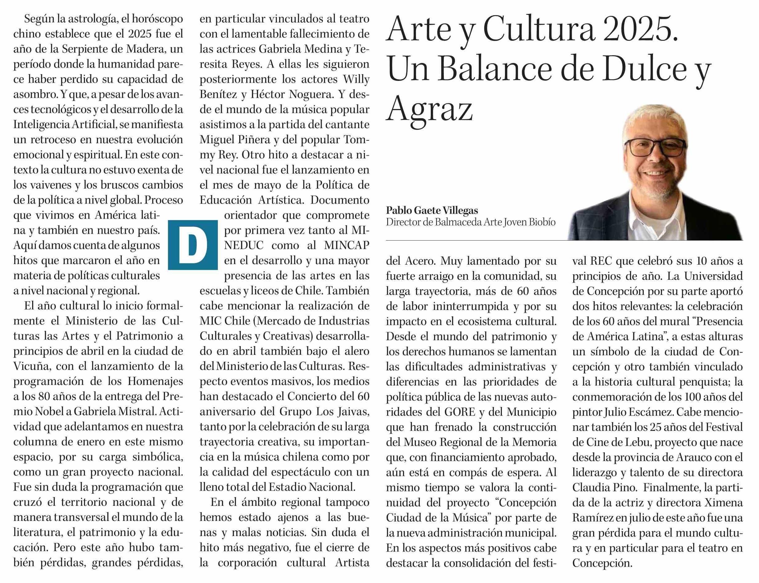 Columnas de Opinión: Arte y Cultura 2025. Un Balance de Dulce y Agraz
