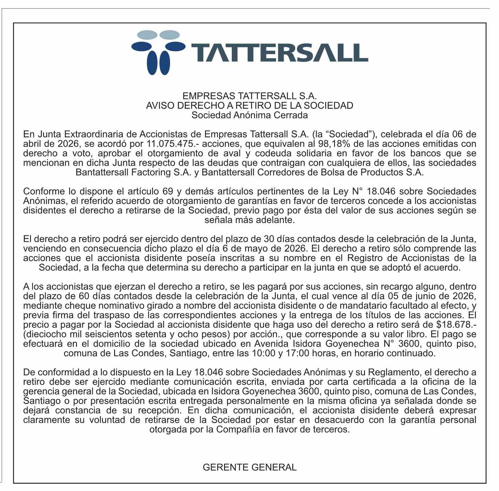 EXTRACTOS: EMPRESAS TATTERSALL S.A