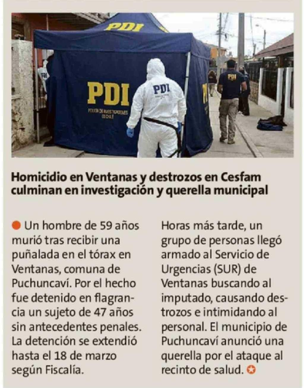 Homicidio en Ventanas y destrozos en Cesfam culminan en investigación y querella municipal