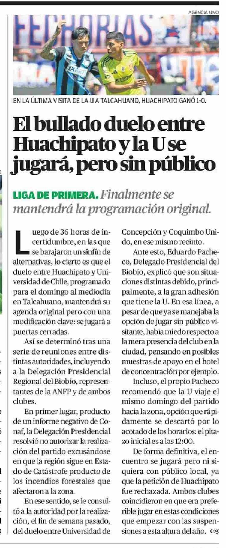 El bullado duelo entre Huachipato y la Use jugará, pero sin público