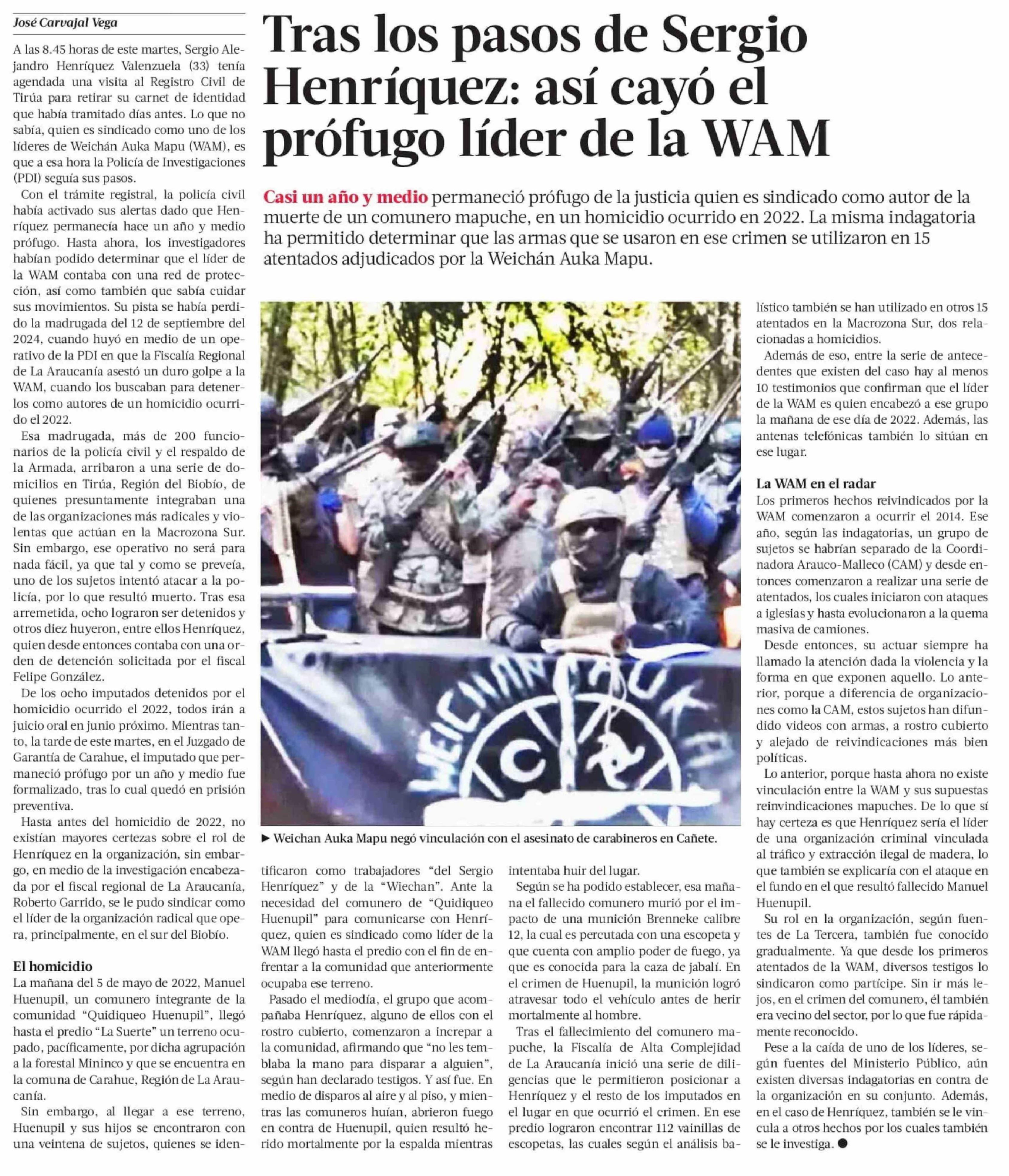 Tras los pasos de Sergio Henríquez: así cayó el prófugo líder de la WAM
